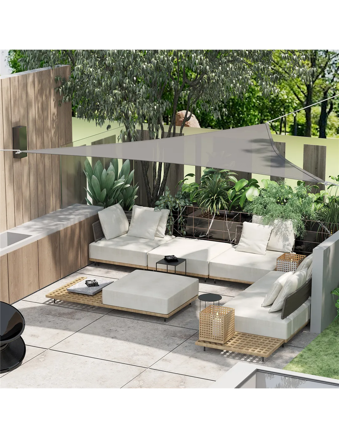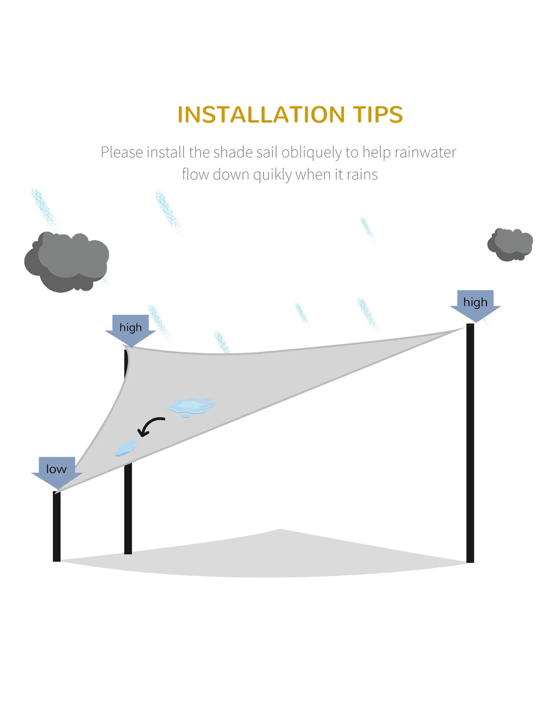 Keep sheltered outdoors with this sail shade from Outsunny. Made from 185gsm polyethylene, our sail shades for garden are tough and protects you from direct sunlight and damaging UV rays - meaning you can sit safely underneath. Cut to a triangle shape, this sun sail is easy to attach to odd-shaped spots, with stainless steel rings on each corner and ropes to secure into place. Now any spot will become the go-to place when the sun comes out to play. Carry bag included.