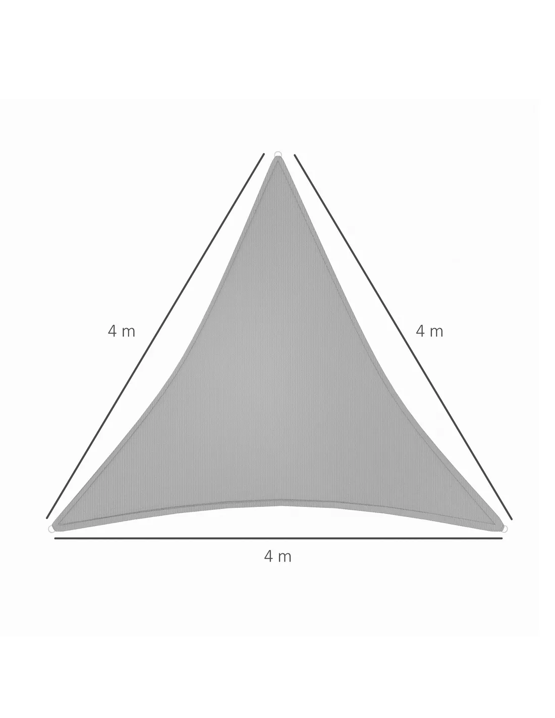 Outsunny 4x4x4m Triangle Sun Shade Sail, Outdoor UV Protection HDPE Canopy, Patio Deck Shelter with Steel Rings and Ropes, Grey