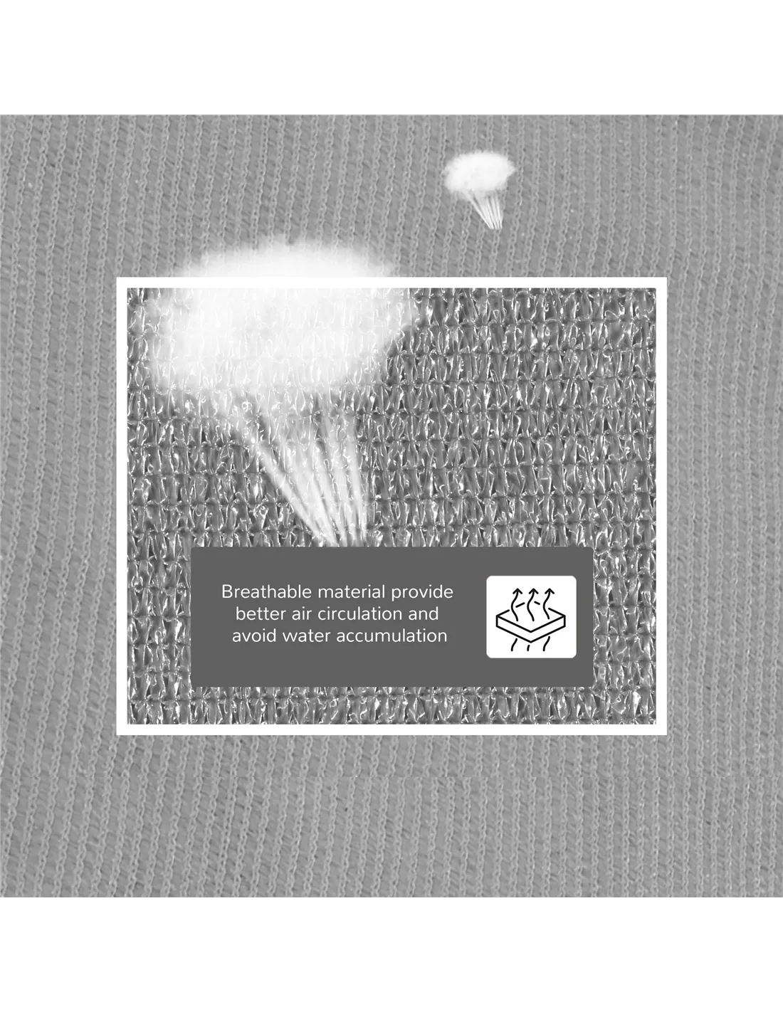 - Double stitched corners with stainless steel rings to attach and hold in place to the chosen area