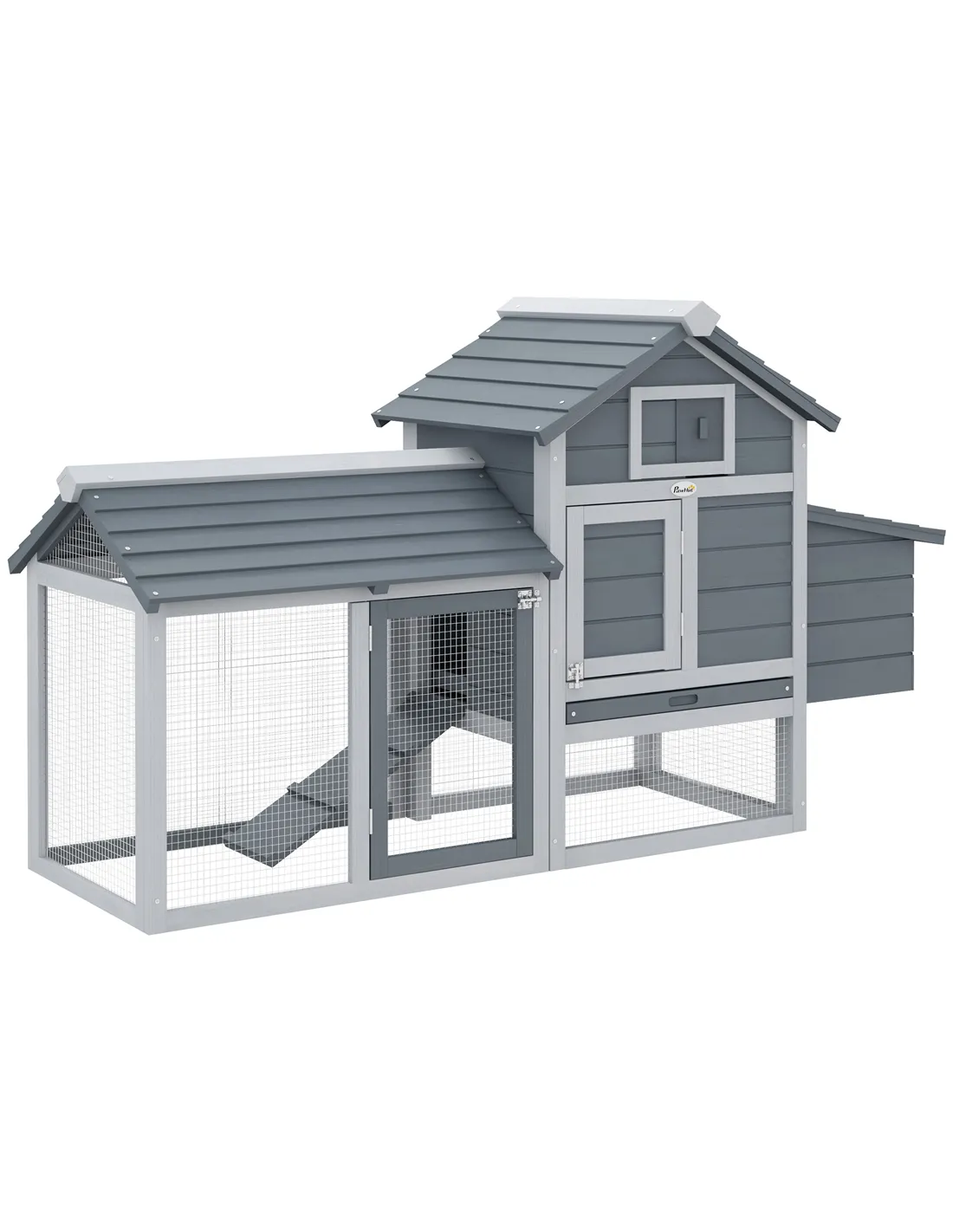 PawHut Small Chicken Coop with Run Hen House Poultry Coops Cages Nesting Box Grey 150.5 x 54 x 87cm