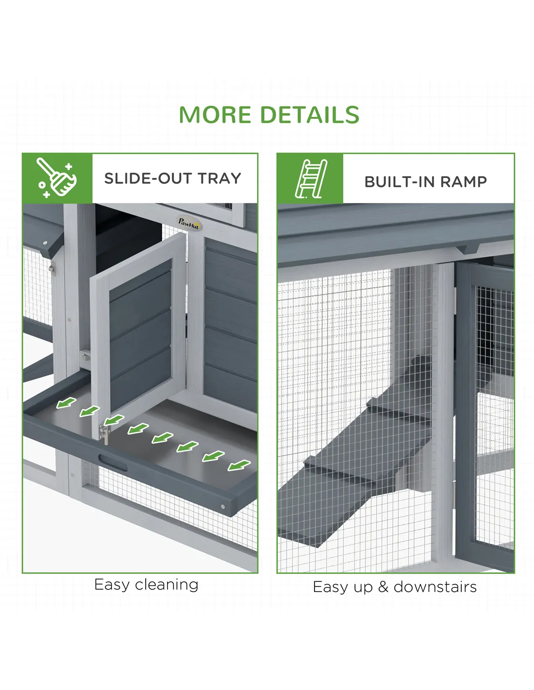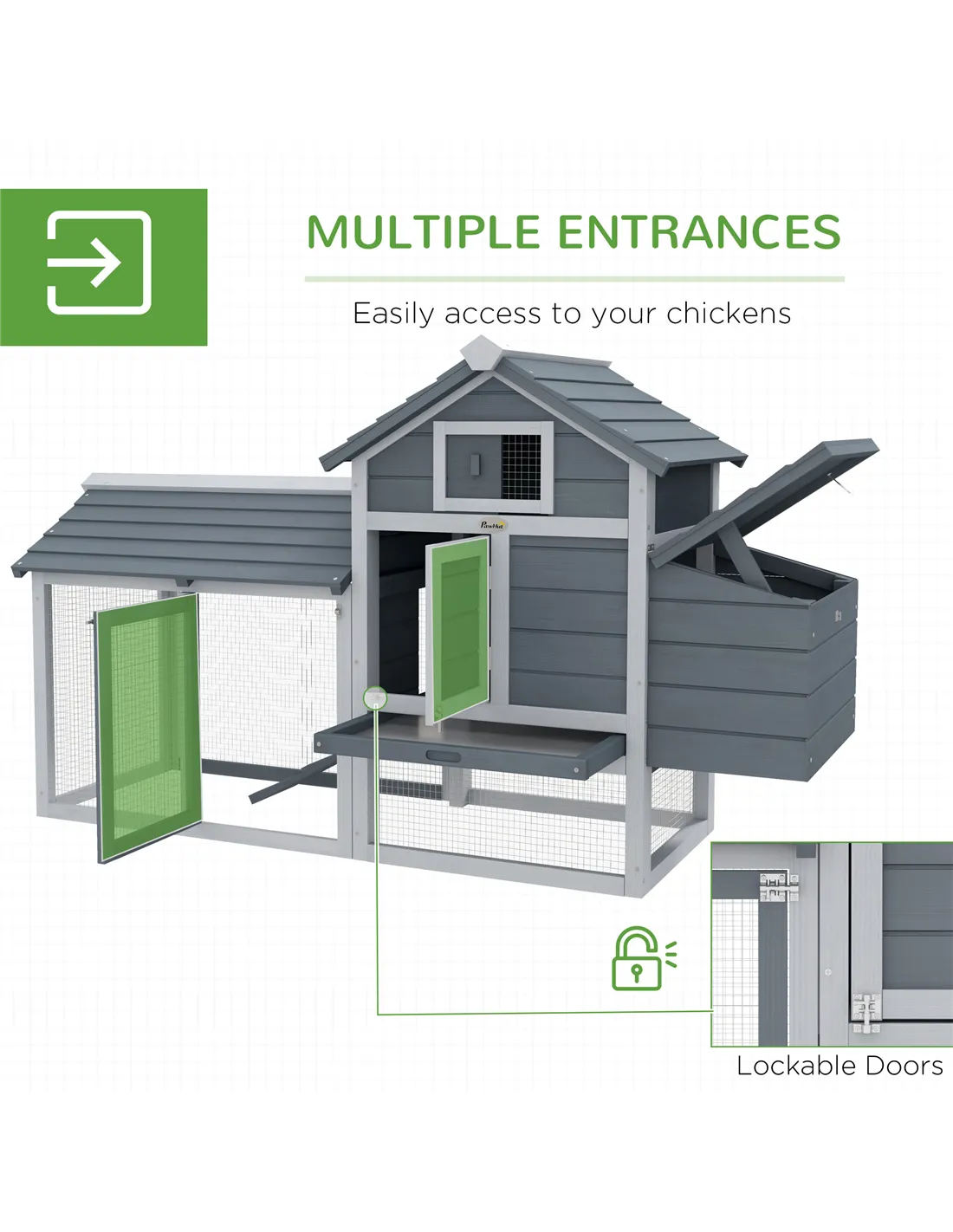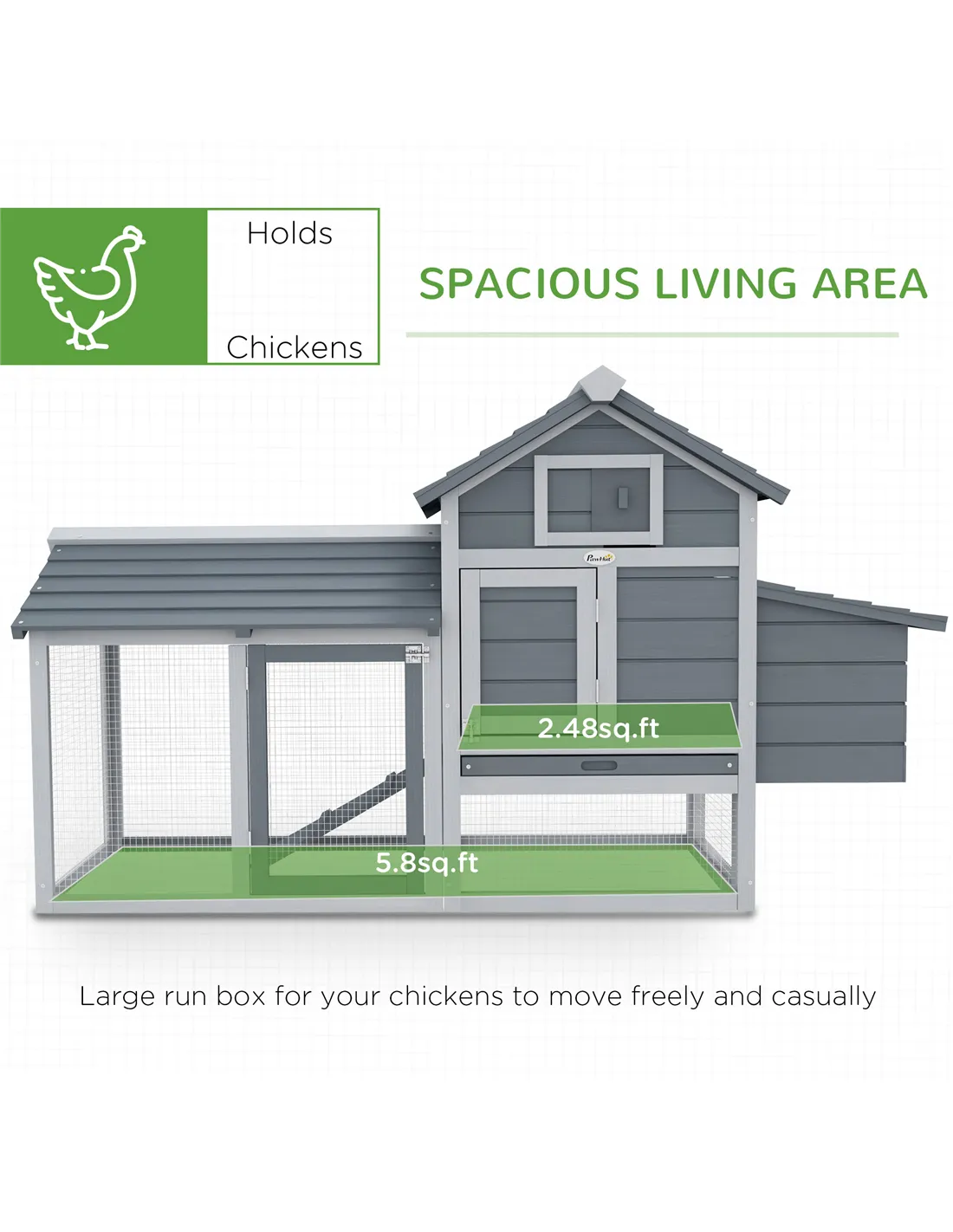 House your chickens in a place they'll love, thanks to this deluxe coop from Pawhut. A combination of a house and an enclosed outside area, they’ll be able to comfortably choose where they want to go. The house, painted with non-toxic paint, is built from solid fir wood to provide durability. With a ramp for your chickens to walk in and out hassle-free, this coop has a slide-out dropping tray for easy cleaning. Safe, comfortable and beautiful, it's the perfect coop for your chickens.
