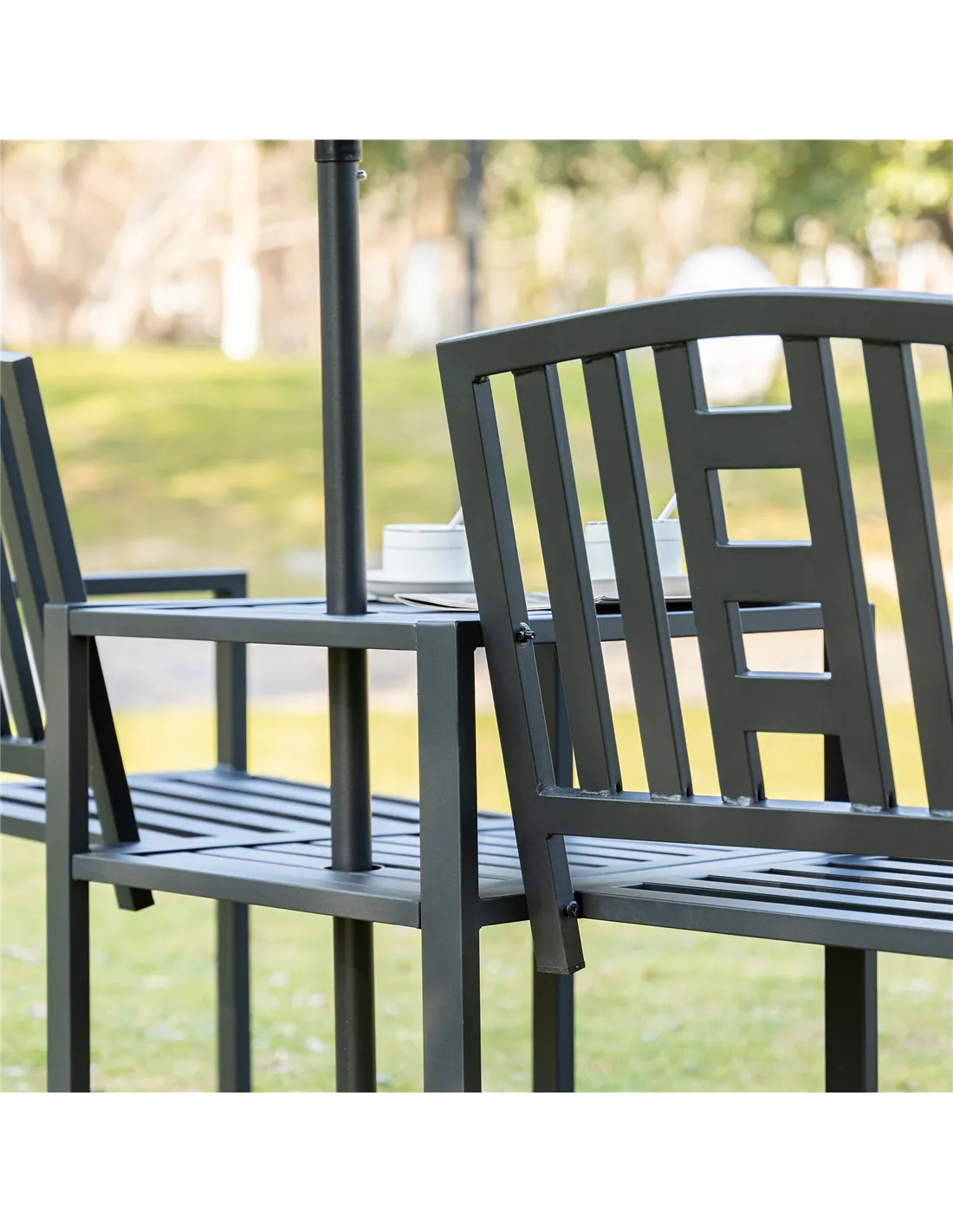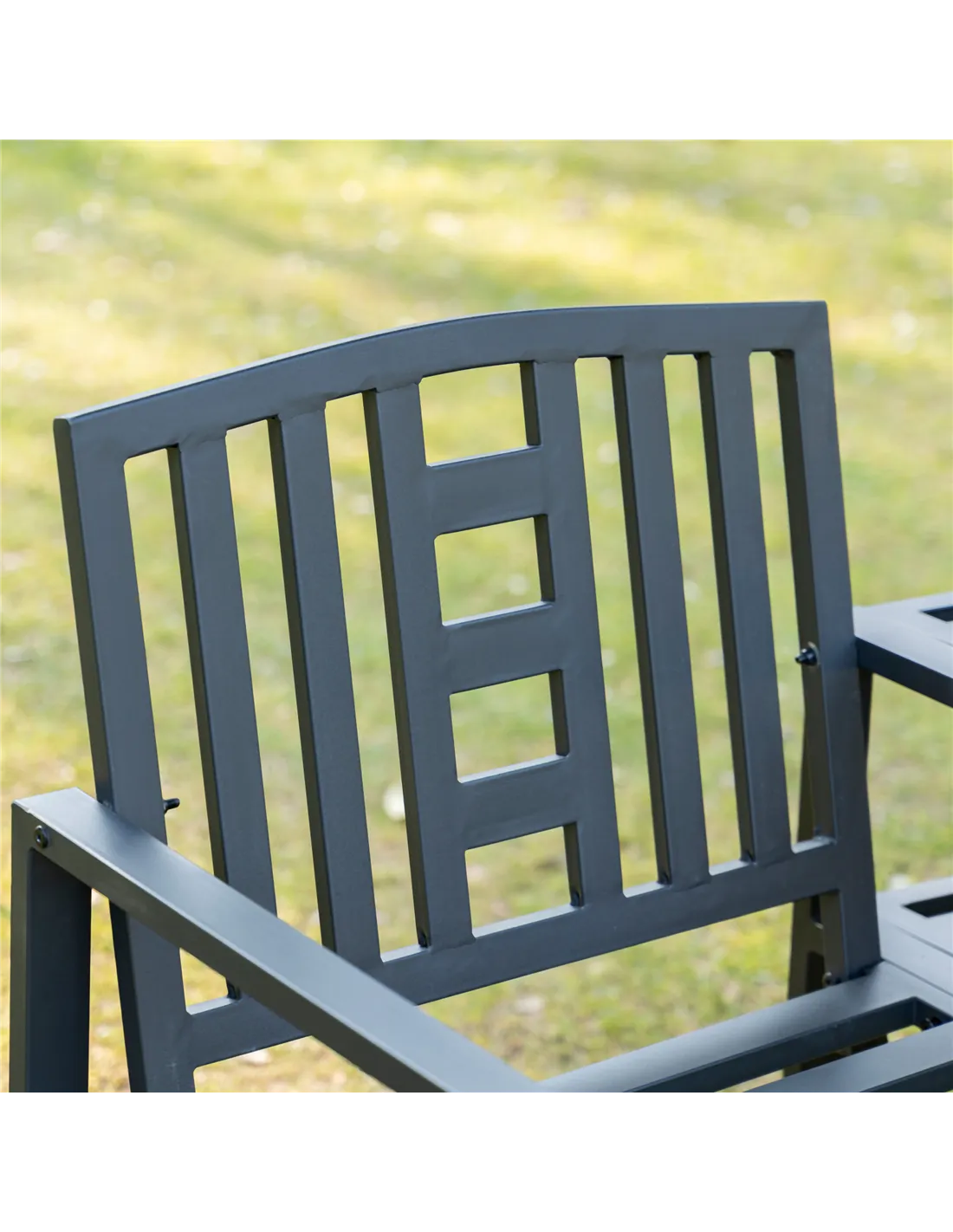 Ensure all your hours spent relaxing in the sun and outdoors are as enjoyable as possible with this love seat from Outsunny. Made from metal for a tough and durable structure, it is crafted into two single-seat design with a middle table – providing room for you and a friend to sit and enjoy the fresh air. Slatted all over to prevent water build up and allow air to pass through, it is finished with a middle hole in the table to steadily hold a parasol.