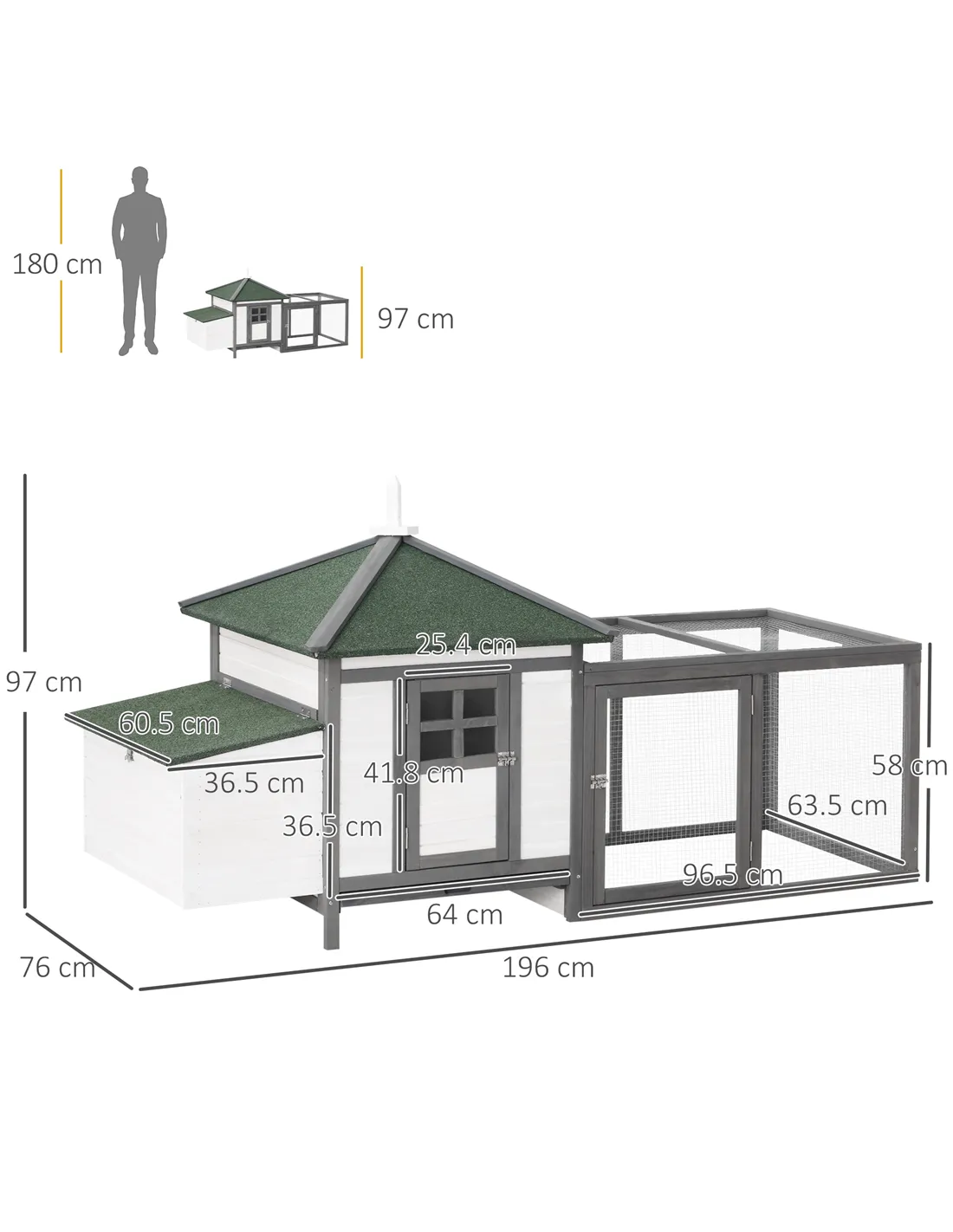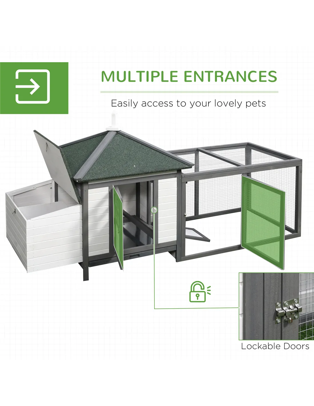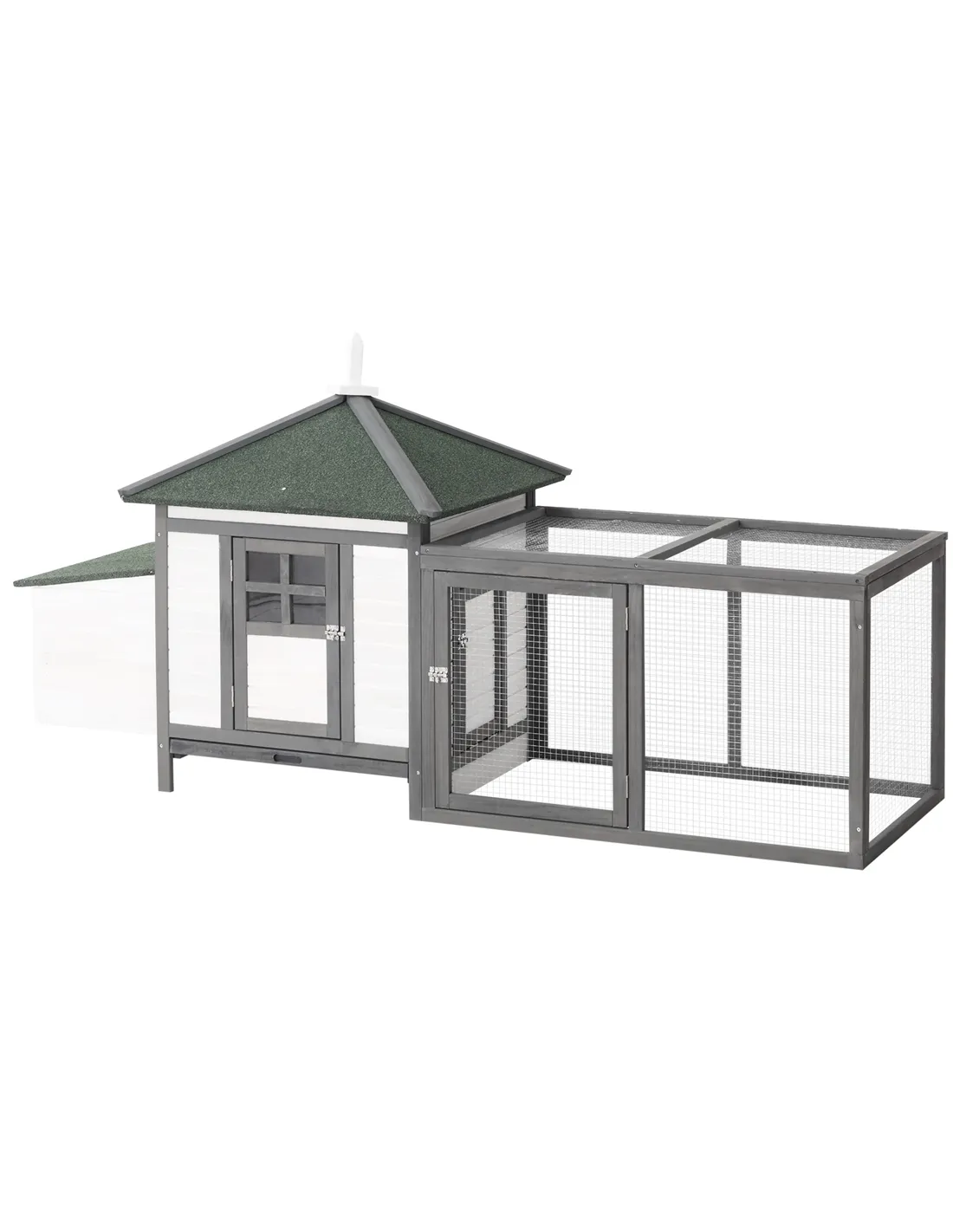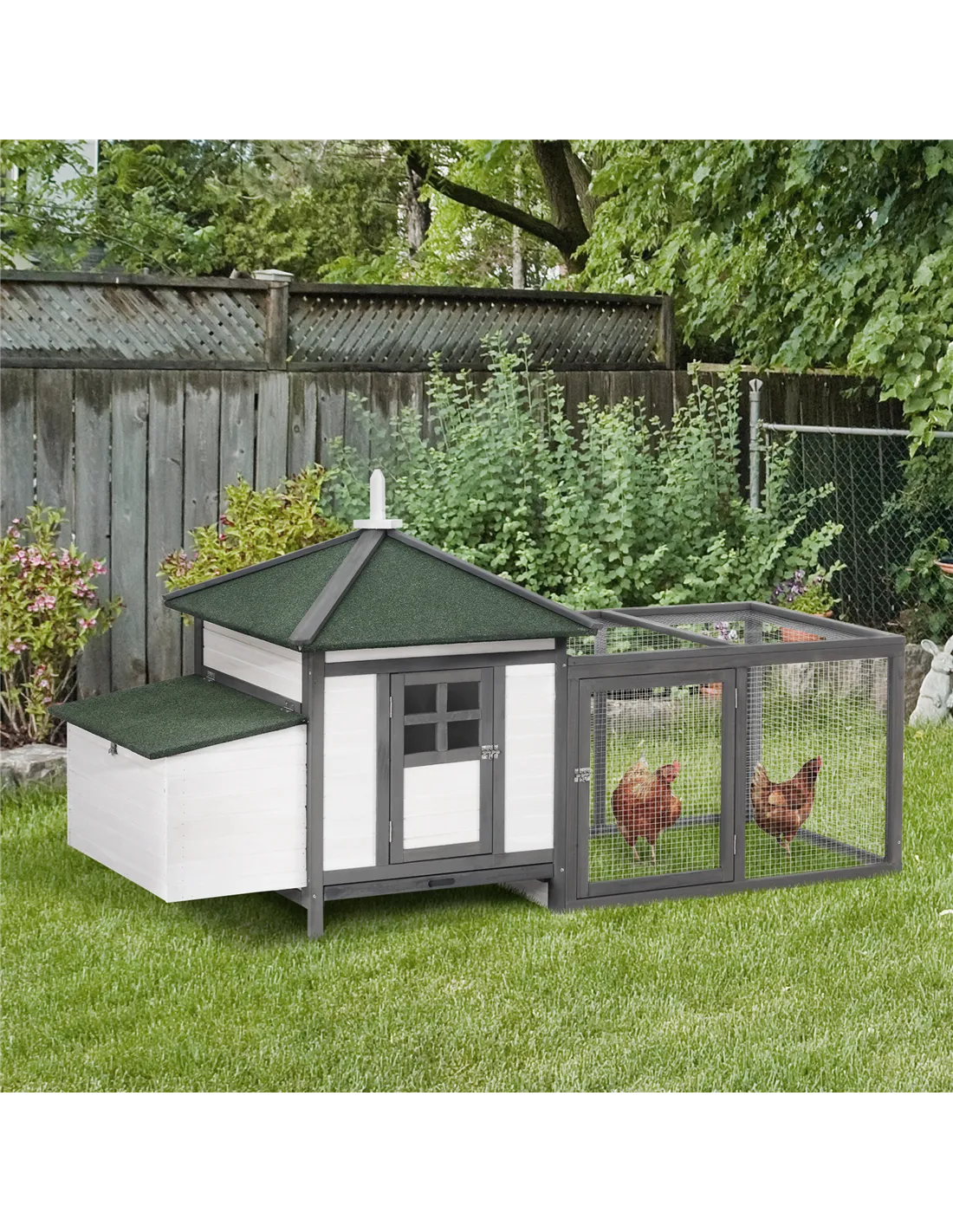 Discover the charm of the PawHut Small Animal Coop, a delightful haven for your feathery friends. Featuring a spacious run and a cosy main house, it offers lots of space for play and rest. The coop includes a convenient pet nesting box, making egg collection a breeze. Transform your garden into a lively poultry retreat with this stylish small animal house!