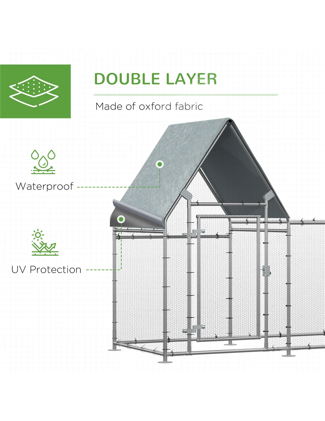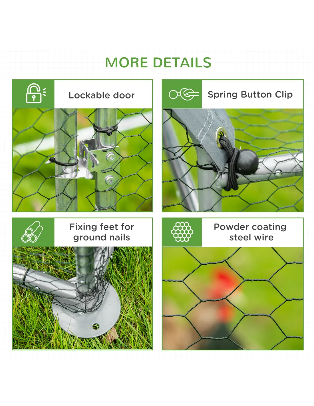 PawHut Walk In Chicken Run Chicken Coop, Large Poultry Cage Hen House for 6-8 Chickens Outdoor w/ Water-Resist Cover 302 x 107 x 172cm
