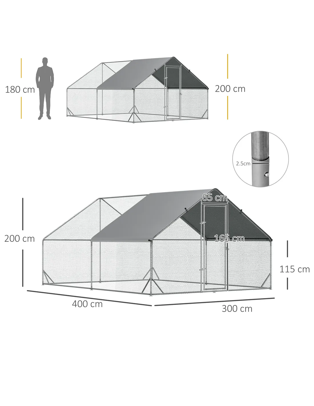 PawHut Chicken Walk-in Run, Galvanised Chicken Coop, Hen Poultry House Cage, Rabbit Hutch Pet Playpen Garden w/ Water-Resist Cover, 3 x 4 x 2m