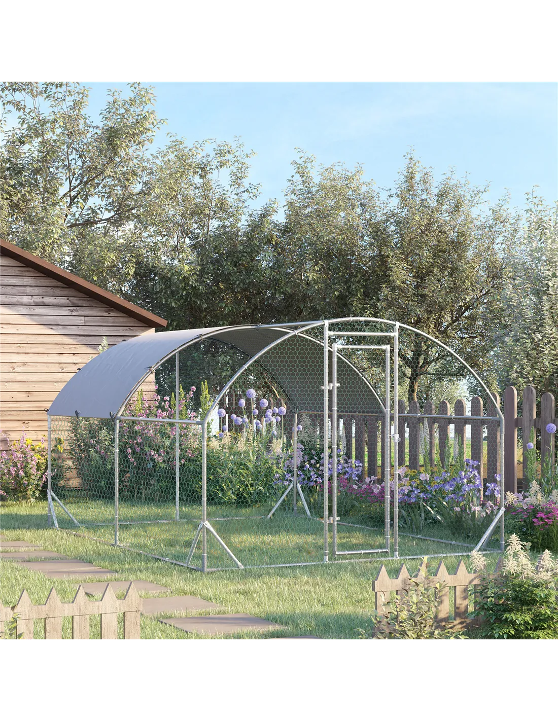 The PawHut galvanised chicken run is a versatile outdoor enclosure ideal for keeping poultry such as hens, ducks, and rabbits safe while allowing them ample space to roam. Its robust steel frame and weather-resistant cover make it perfect for UK gardens, providing shelter from rain and sun. This run can be paired with wooden coops to create a complete habitat, ensuring your feathered friends enjoy fresh air and protection from predators. It also serves well as a secure playpen for small pets, offering peace of mind for pet owners who want to keep their animals outdoors safely.