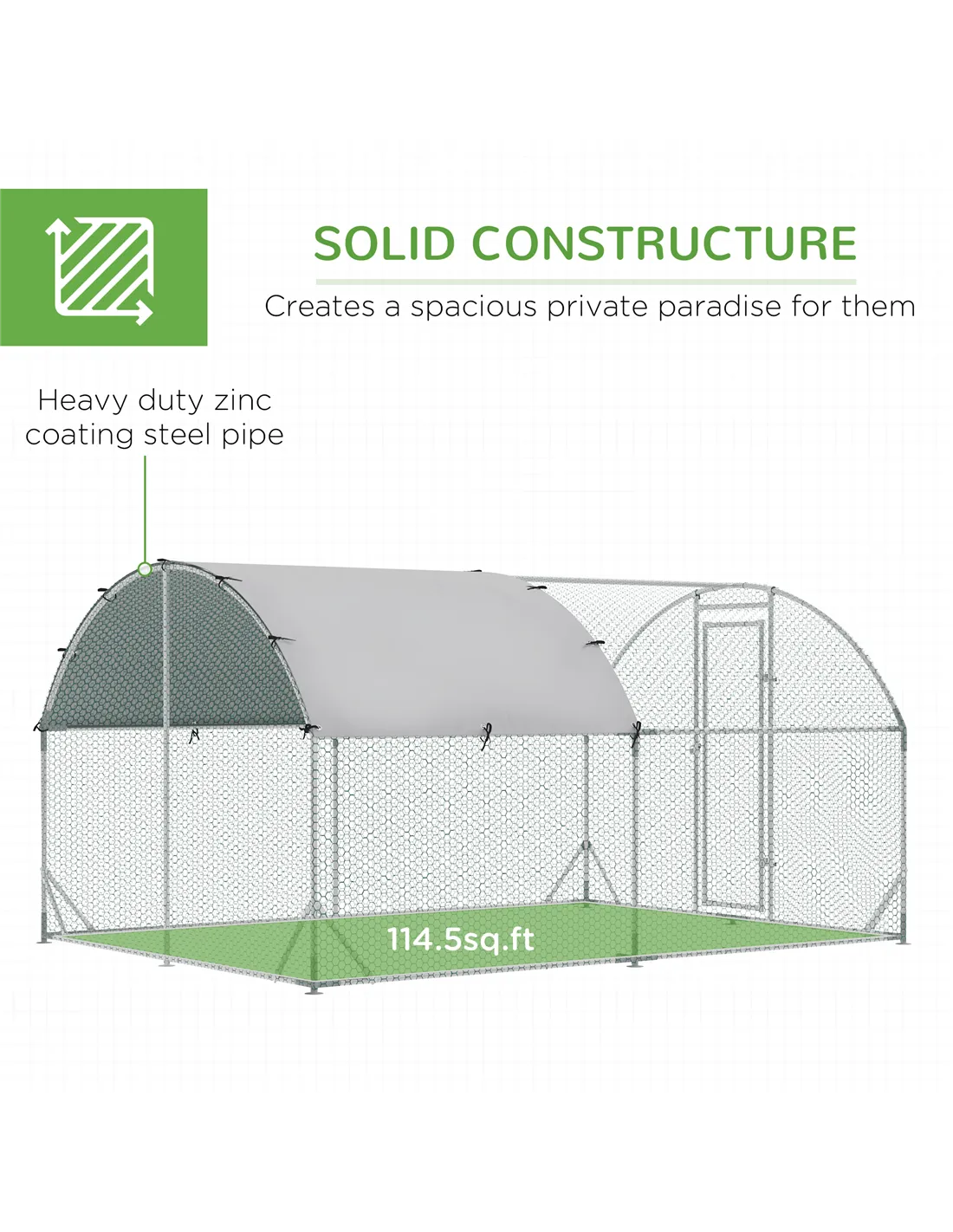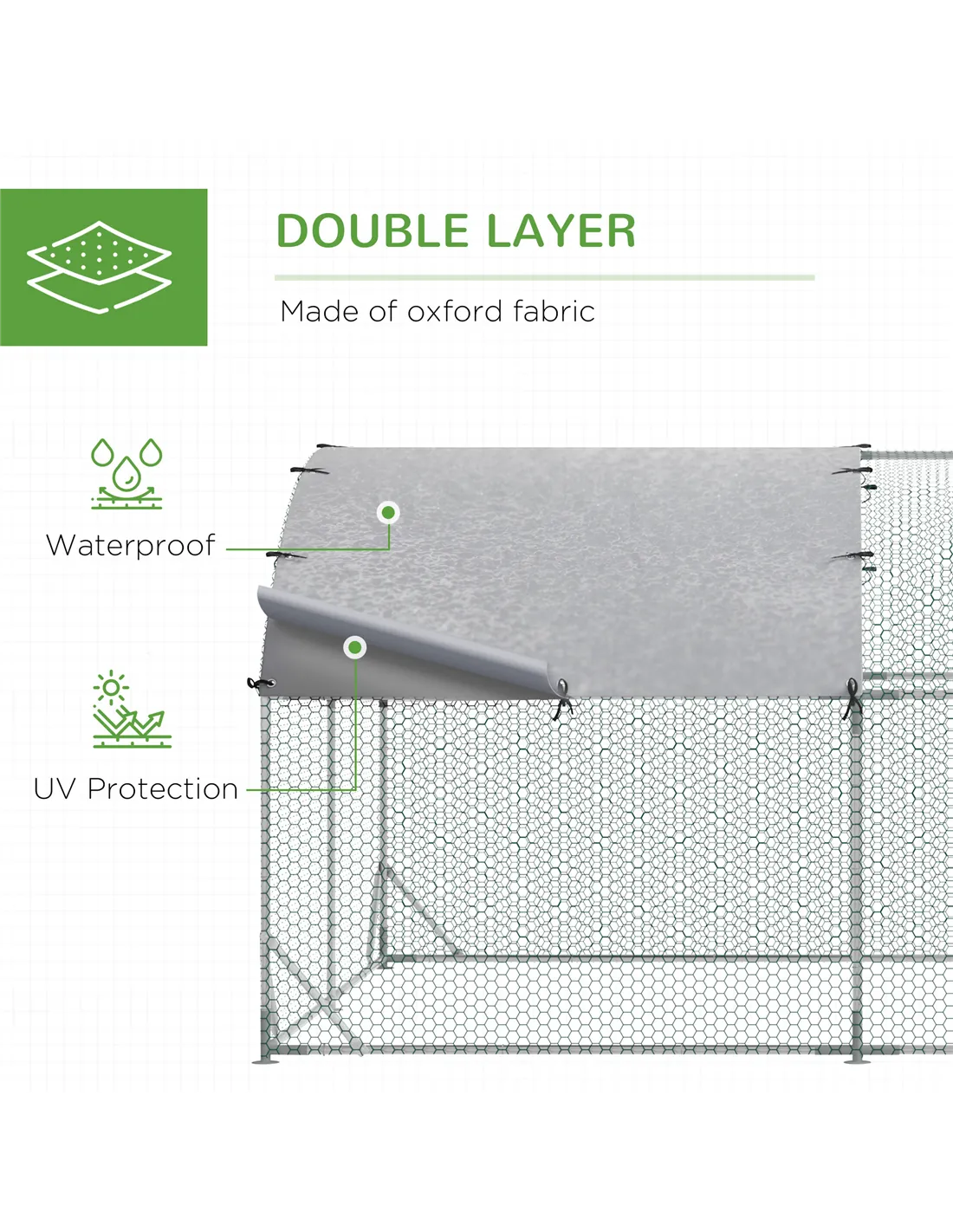 - Hexagonal mesh keeps pets securely in the coop