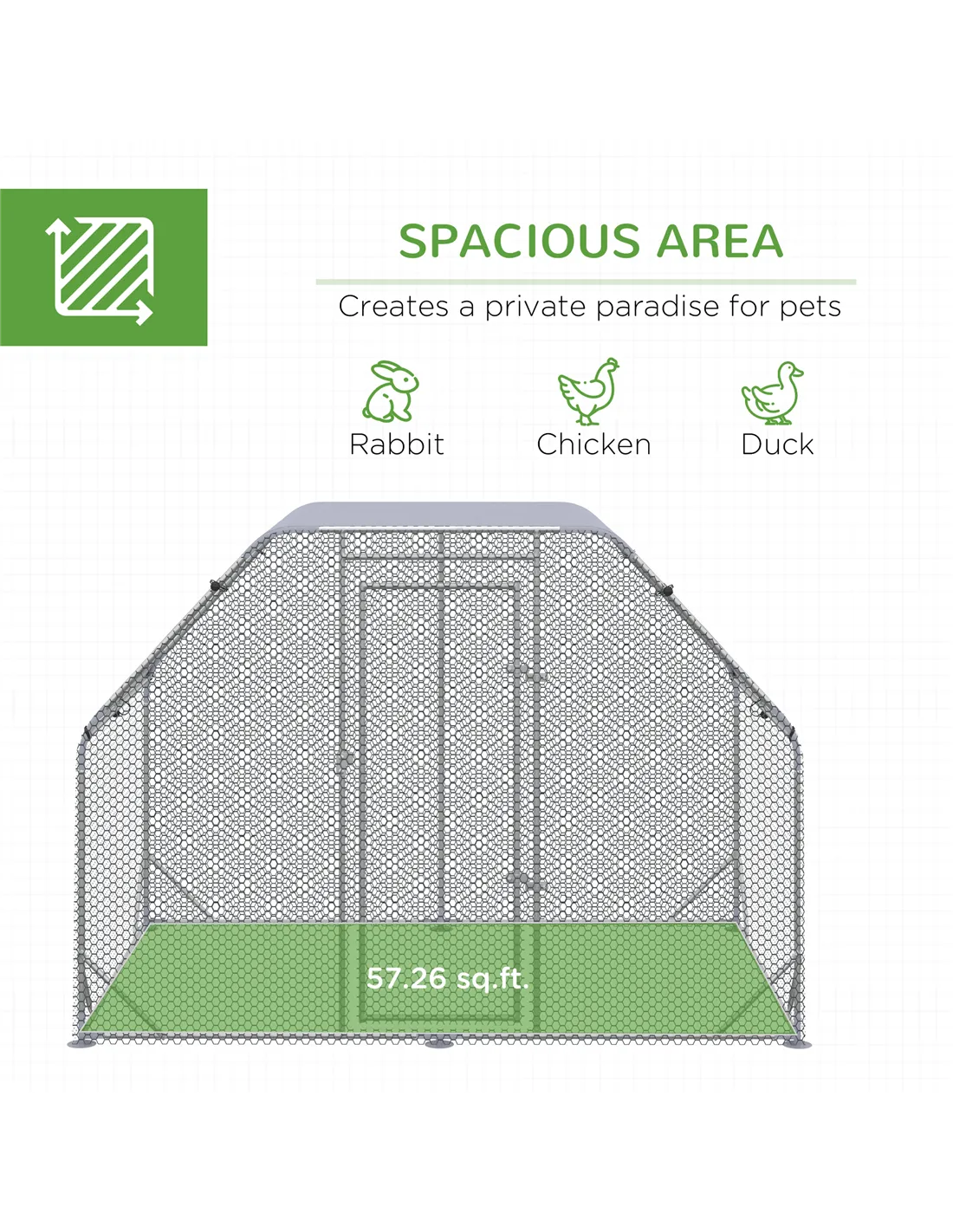 - This spacious enclosure provides lots of room for pets to roam – perfect for chickens, ducks and rabbits