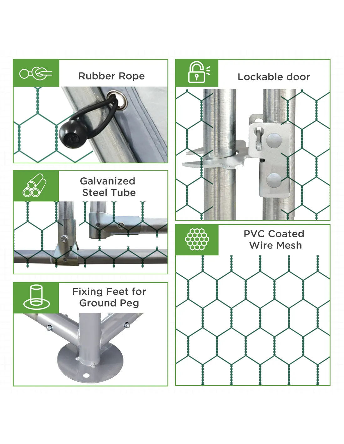 - PVC-coated steel wire protects pets, whilst keeping their space ventilated