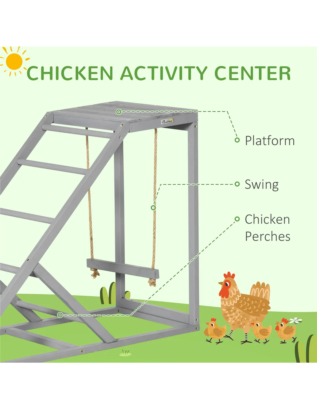 PawHut Wooden Chicken Coop Toy with Swing, Ladder, Platform, Grey