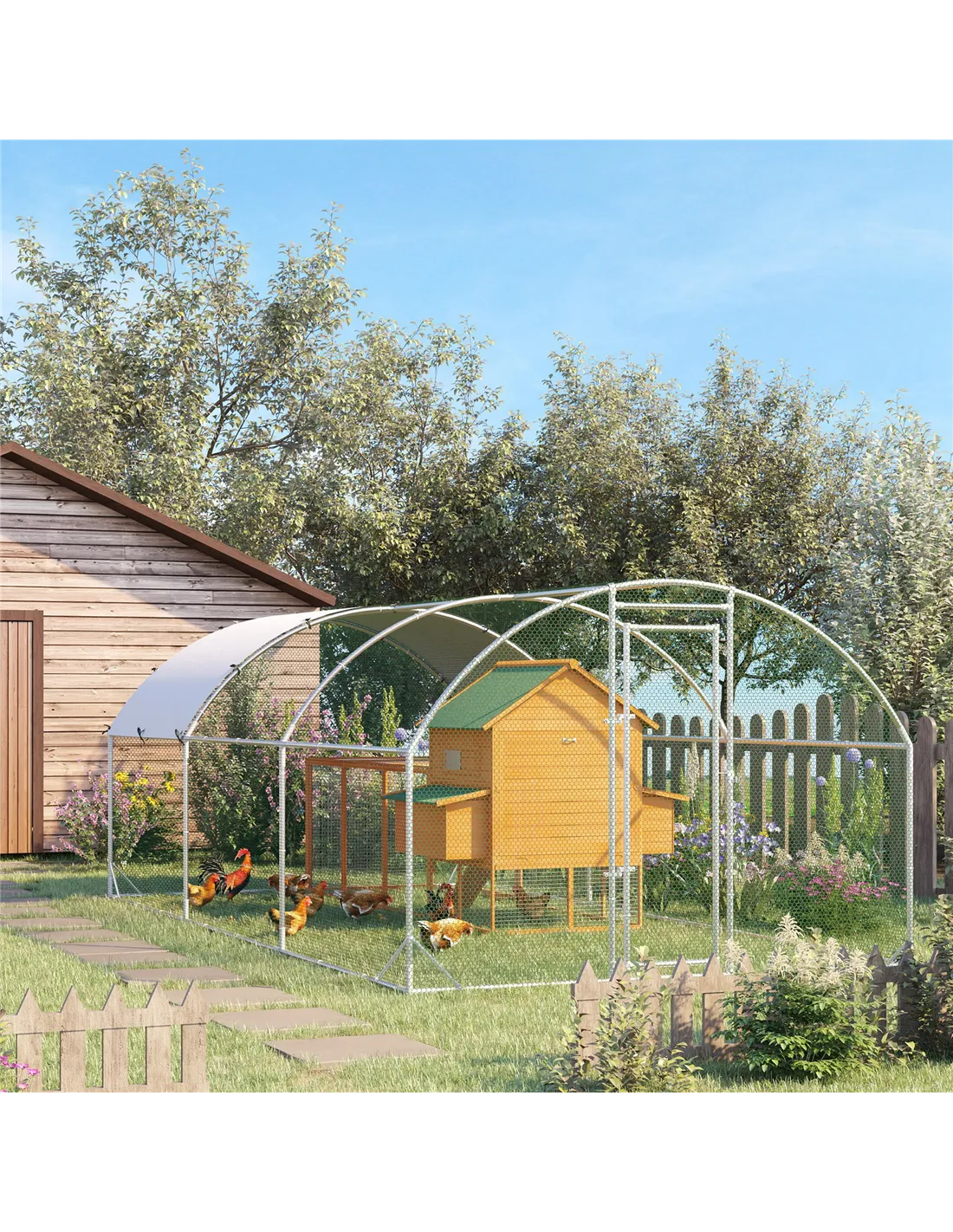 The PawHut galvanised chicken coop with cover is ideal for UK households seeking a secure and comfortable outdoor shelter for poultry and small animals. Perfectly sized to accommodate 12-18 chickens, it also suits rabbits, ducks, and other small pets. Place it in your garden or backyard to provide fresh air and protection from the elements, thanks to its durable steel frame and weather-resistant canopy. Use it alongside wooden cages for added versatility or as a standalone hen house to encourage natural behaviours like roaming and foraging safely. Its lockable door ensures peace of mind by preventing escapes and deterring predators, making it a practical choice for both hobby farmers and pet owners.