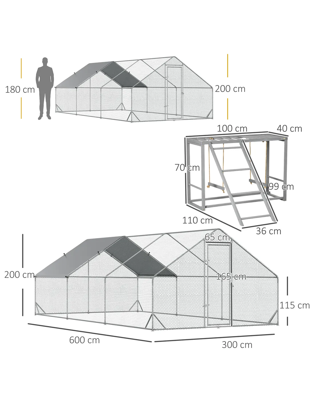 - Chicken Run Dimensions: 300W x 600D x 200Hcm