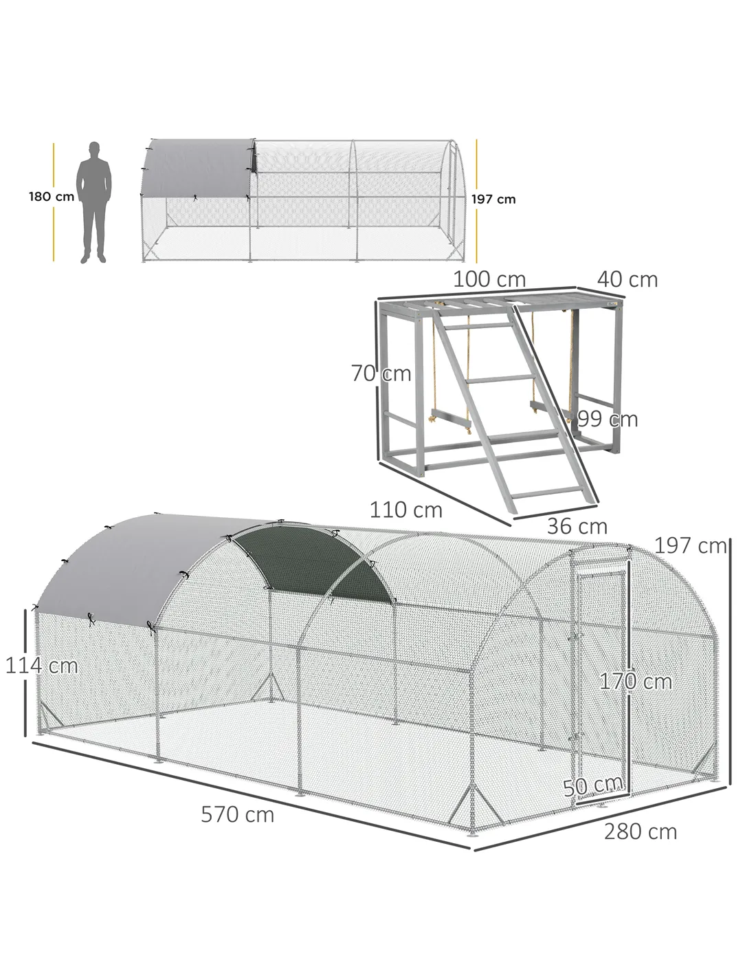 PawHut Walk In Chicken Run with Chicken Activity Shelf and Cover, 2.8 x 5.7 x 2m