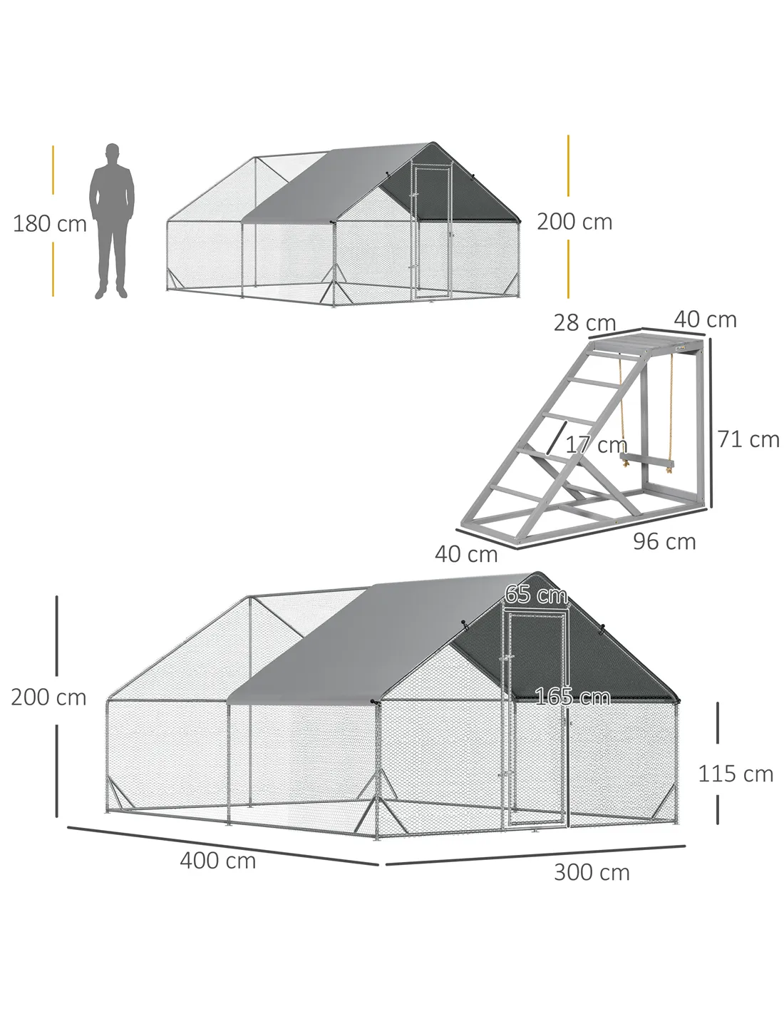 - Chicken Run Dimensions: 300W x 400D x 200Hcm