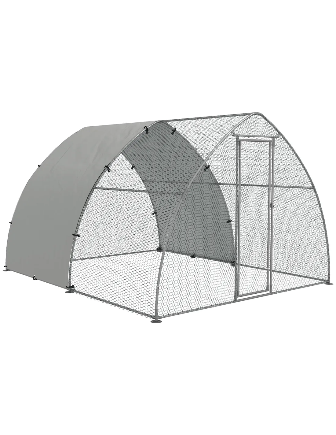 PawHut Galvanised Outdoor Chicken Coop, with Cover, for 8-12 Chickens, Hens, Ducks, Rabbits, 3 x 3.8 x 2.2m - Silver Tone