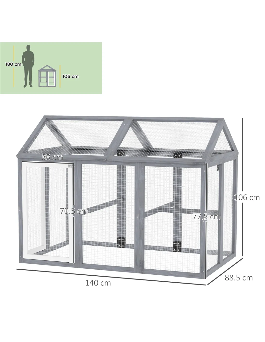 Keep your flock secure with this PawHut poultry pen. A spacious area that can fit between 1-3 chickens, where they'll have room to roam and stretch their wings – the lockable doors keep them safely inside when needed. Made from sturdy wood, it's surrounded with mesh wire to keep predators out, whilst ensuring their space stays cool and ventilated. Multiple doors for easy access, making cleaning effortless. If one is not enough, then you can combine with another coop, creating even more space.