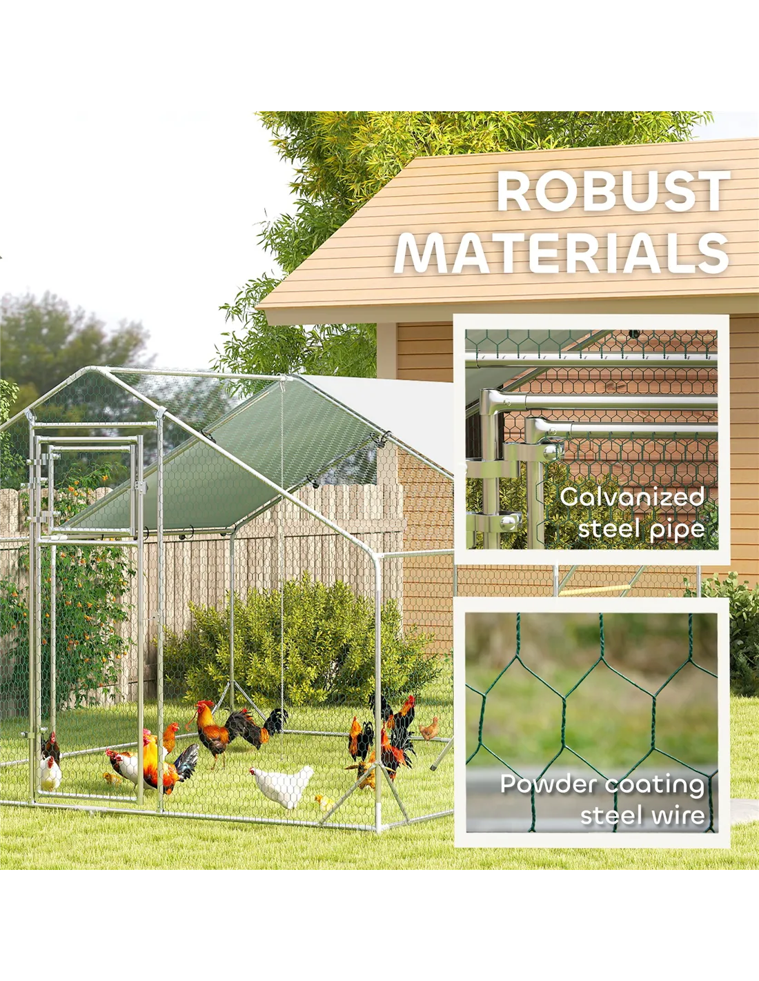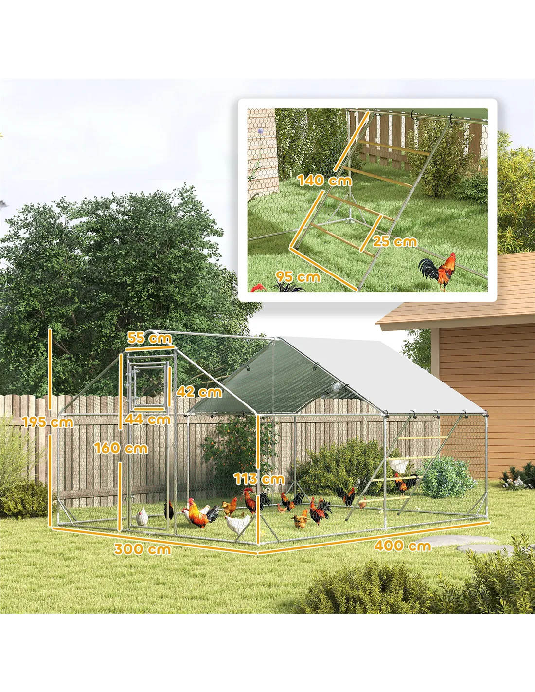 PawHut Walk-in Chicken Run w/ Cover, Feeding Door, Hanging Feeder, Perch, for 12-18 Poultry