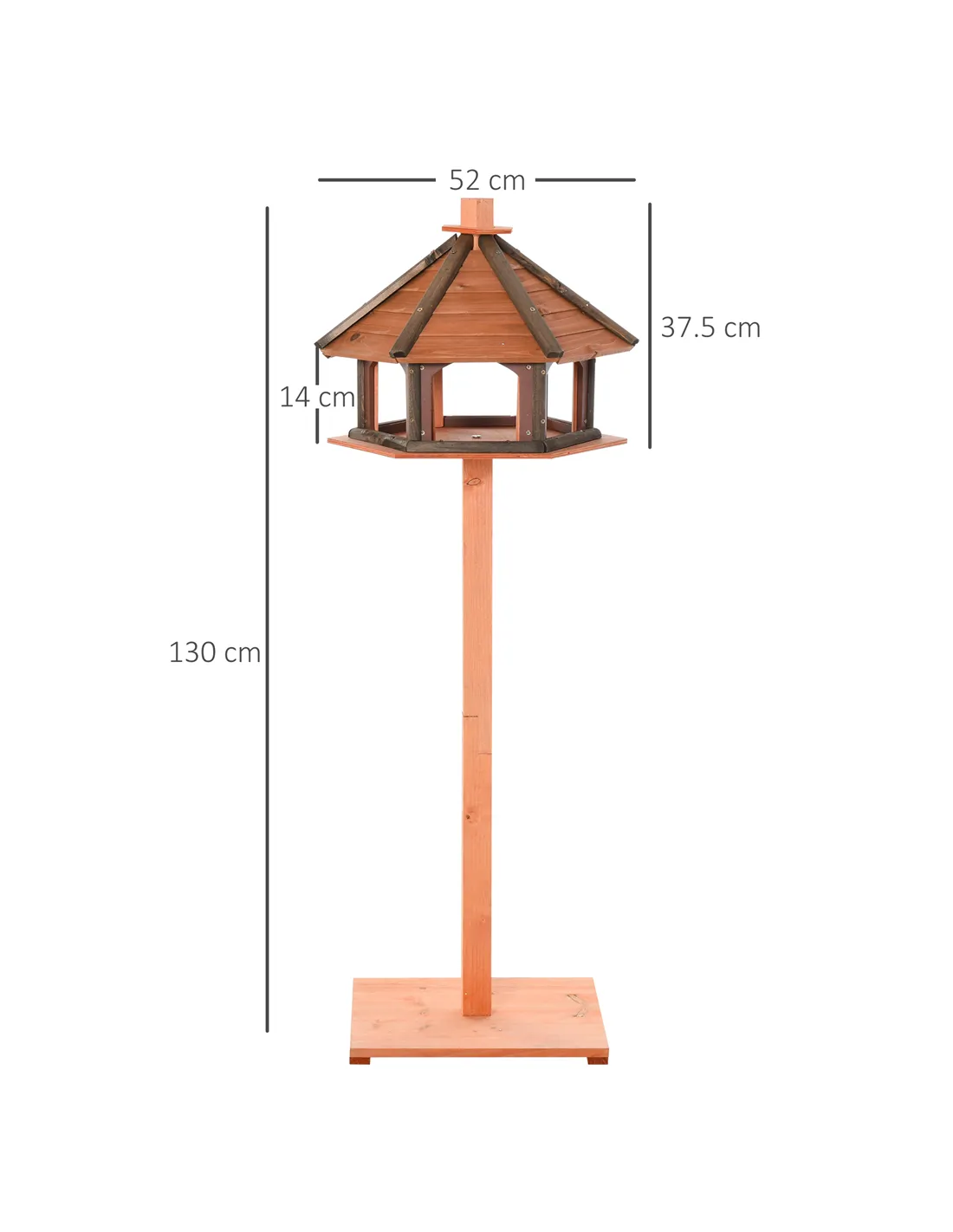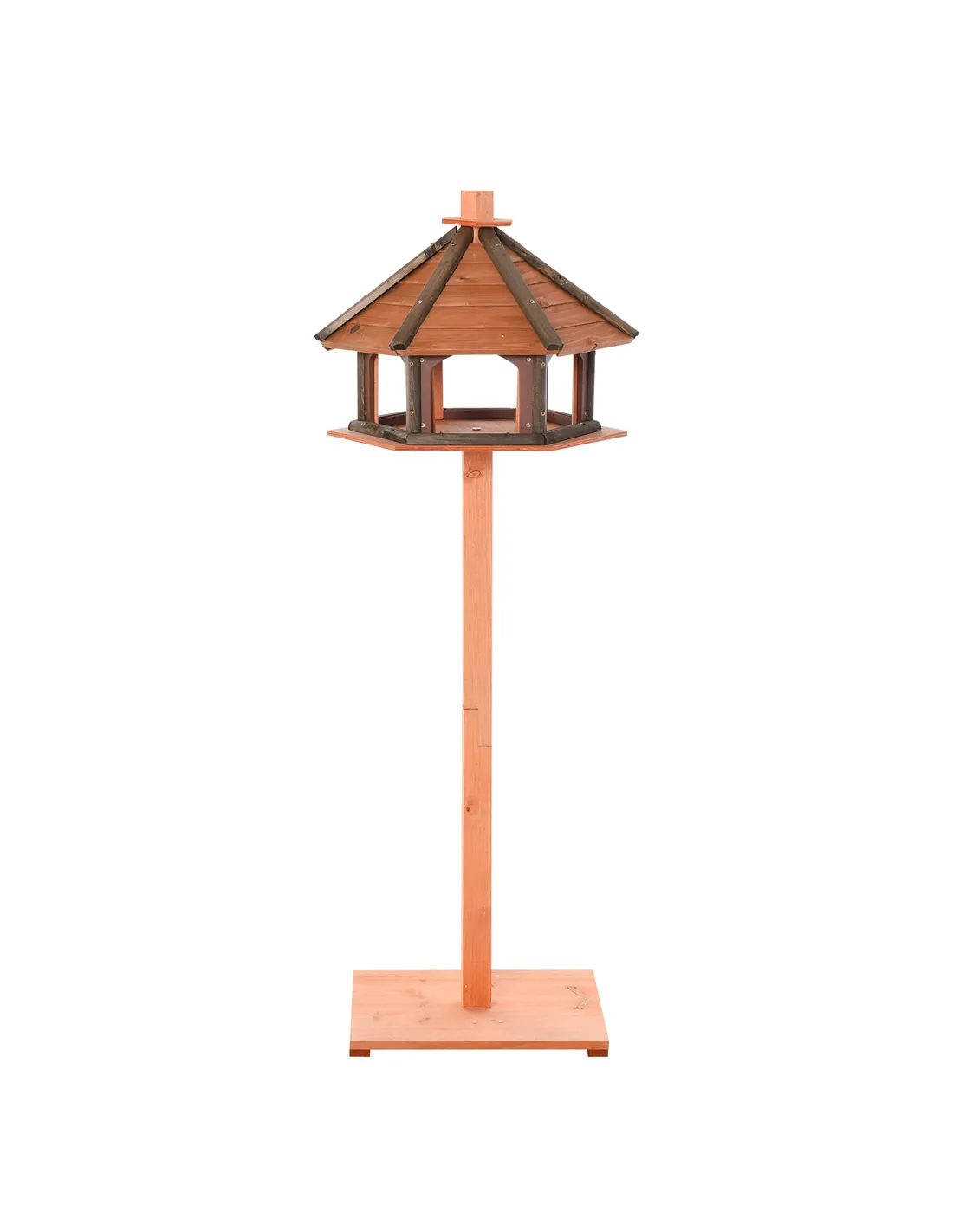 Get closer to nature with this bird feeders station from PawHut. This bird stand features a large top house, where the platform gives a place for birds to rest and eat any food left for them, with the large overhanging roof protecting the space from rain. The fir wood structure, with a weather-resistant finish, means this wooden bird feeder is suitable for mild outdoor use.
