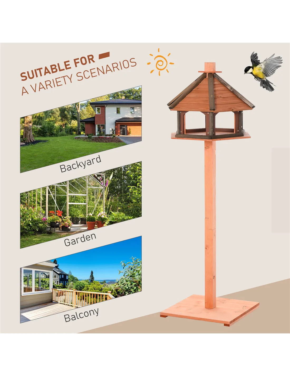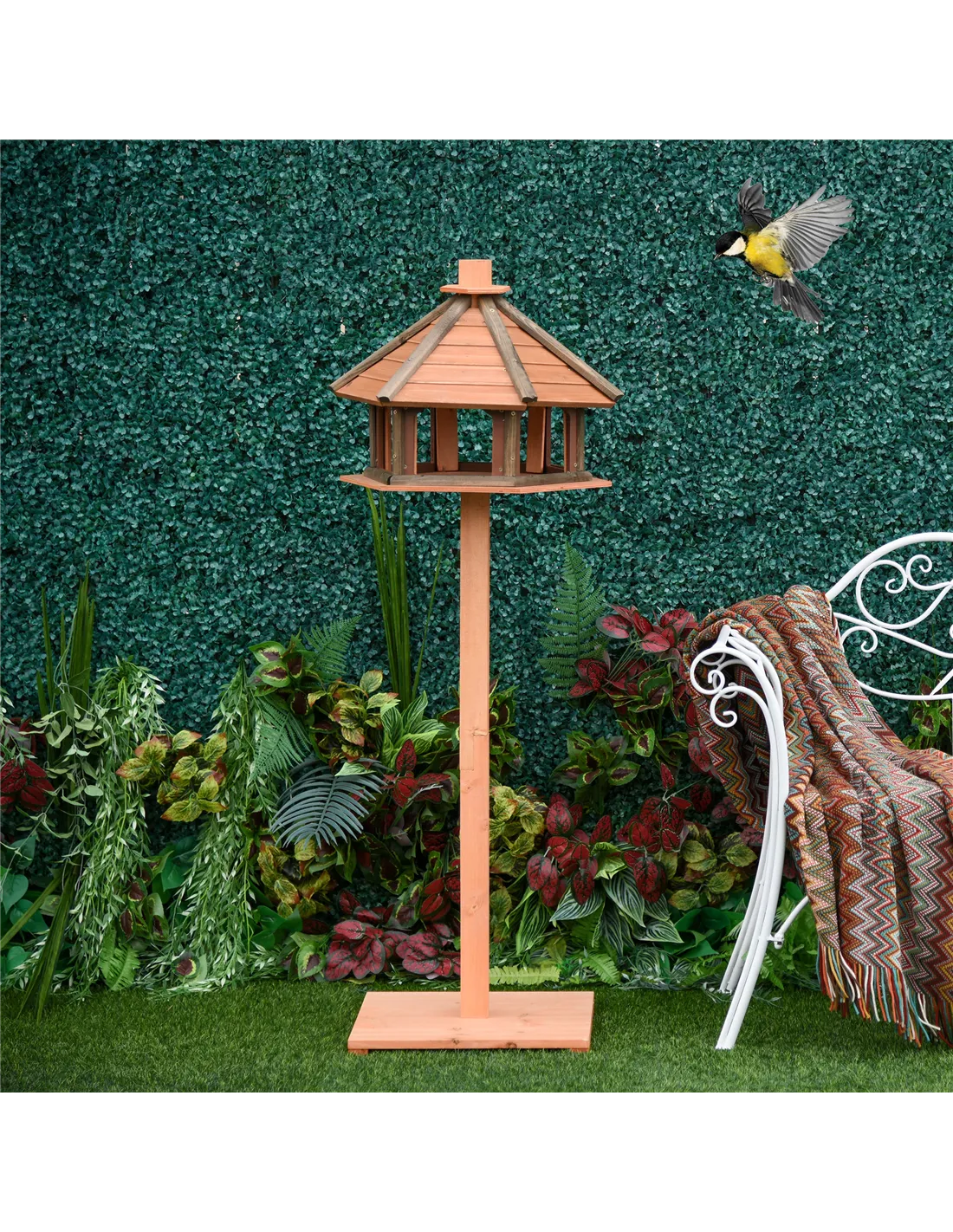 - Place the bird feeding station in your garden or patio to attract a variety of local bird species, creating a lively and natural outdoor space.