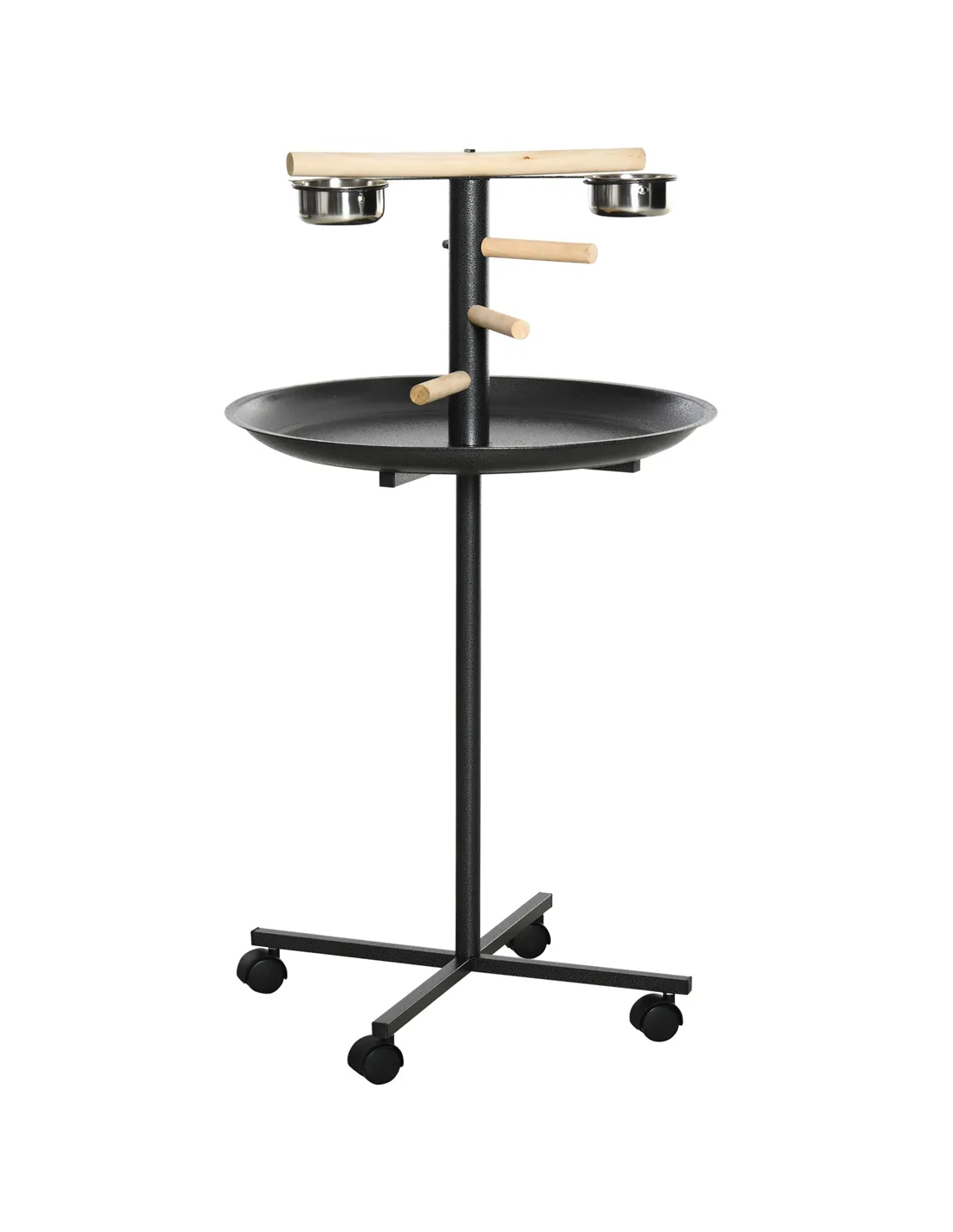 PawHut Metal Bird Table Play Stand, Bird Feeder Station Parrot Perch with Four Wheels Feeding Bowls Round Tray