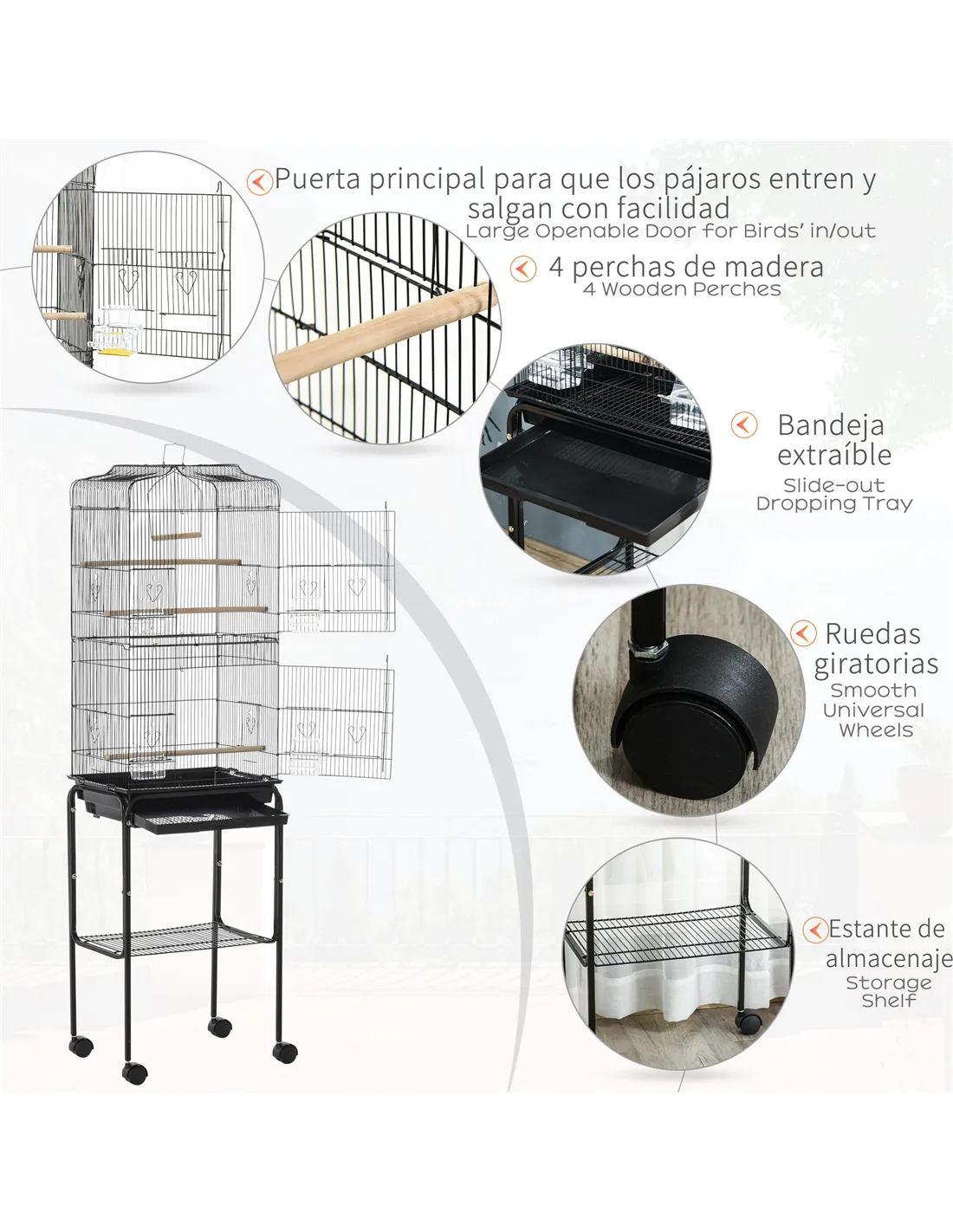 - Bird Cage Dimension: 92H x 44.5L x 33Wcm