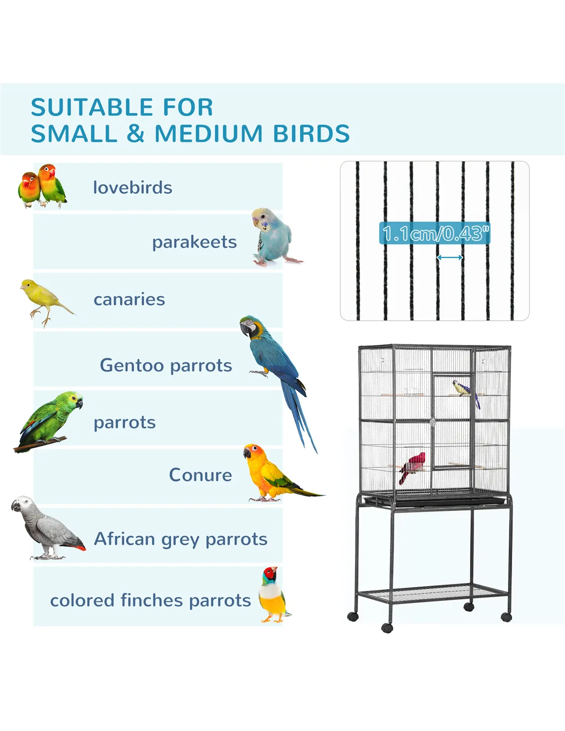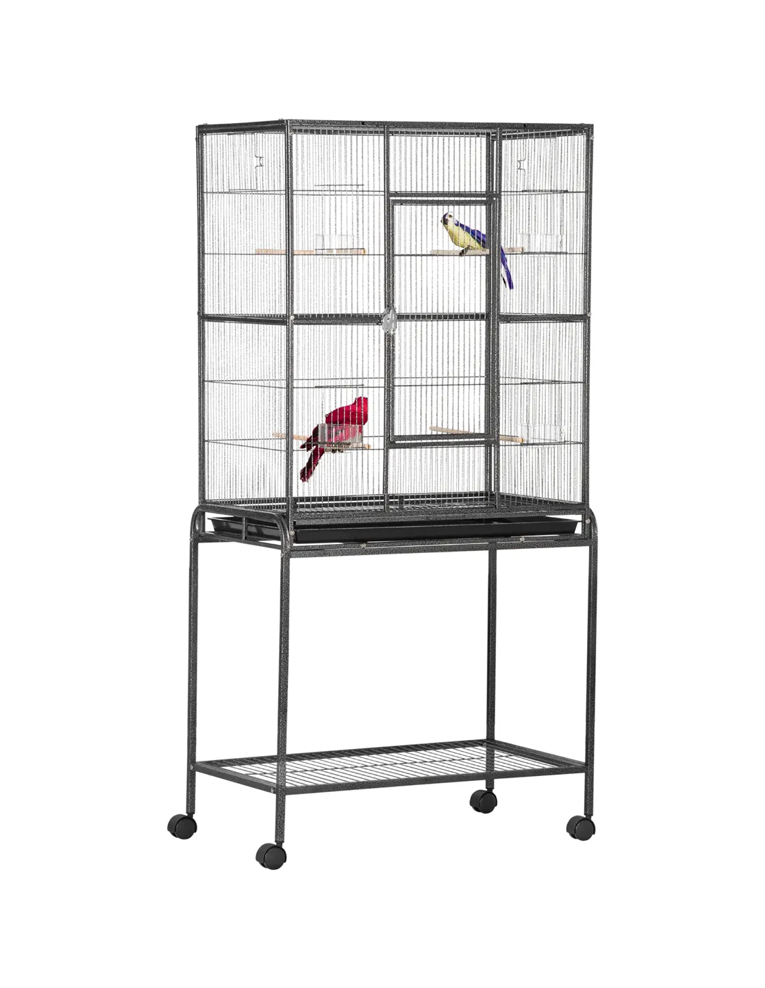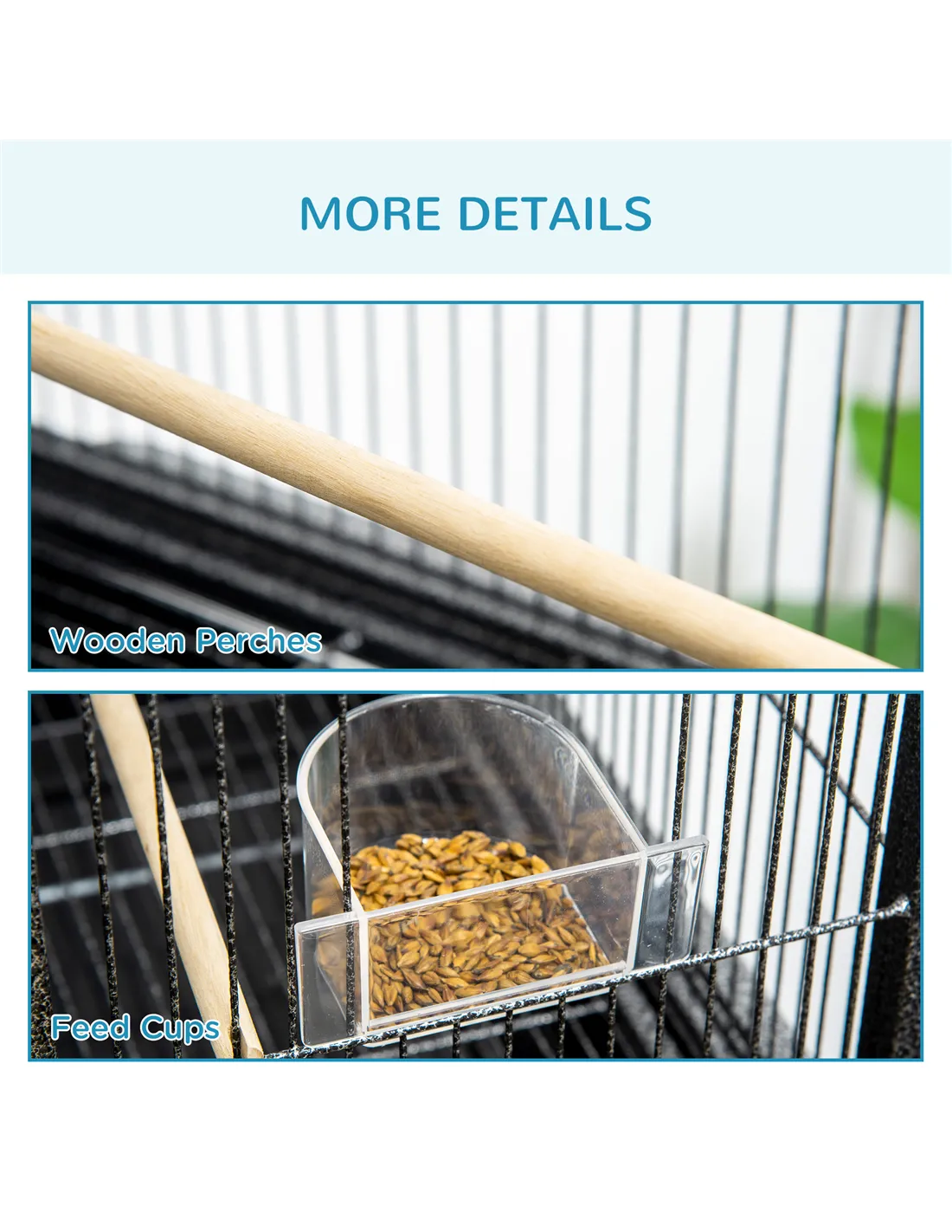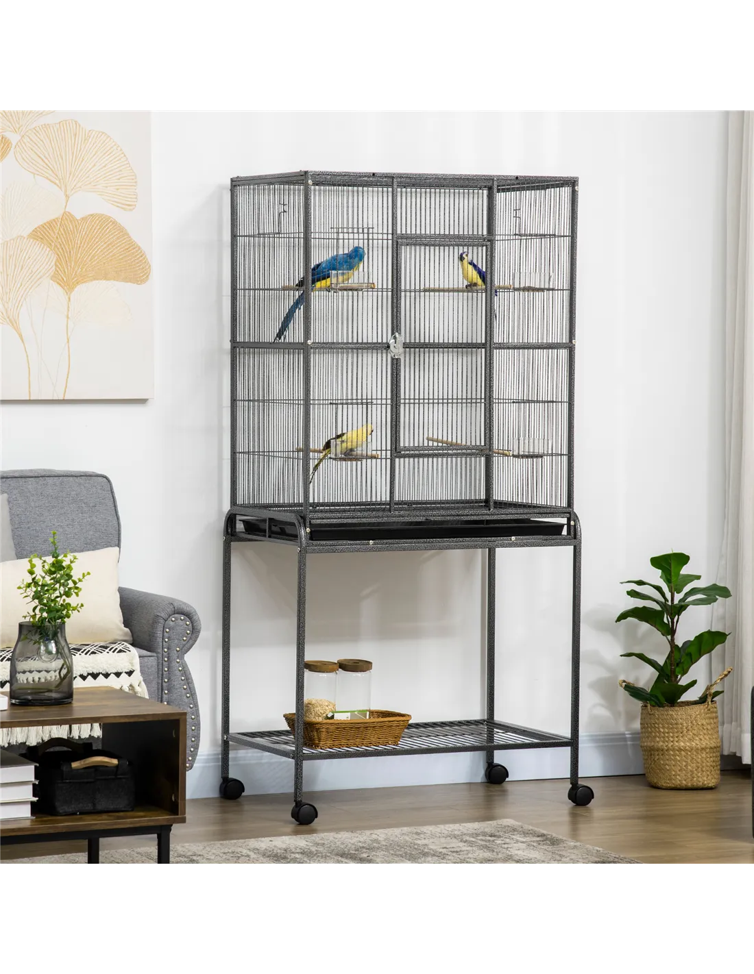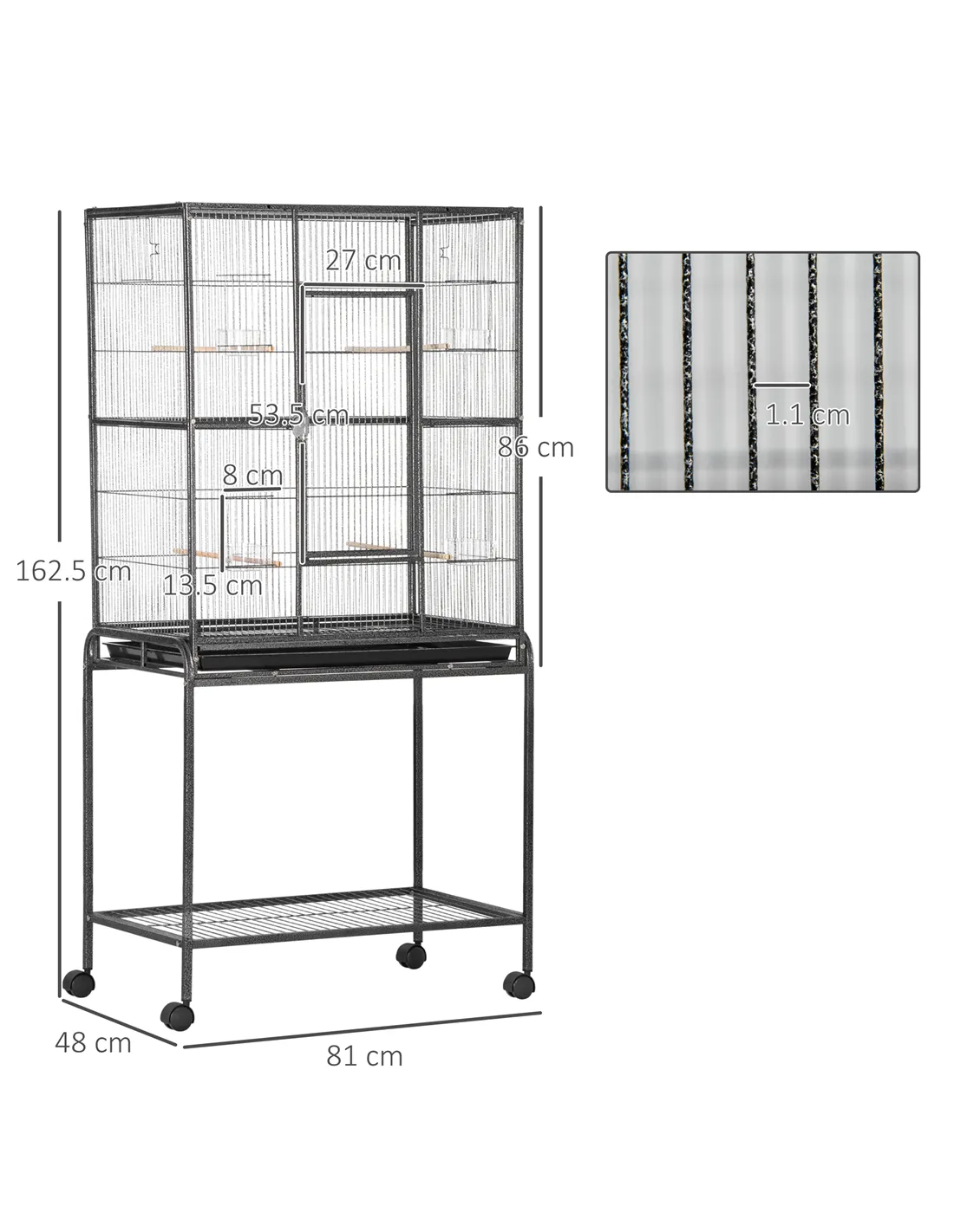 PawHut Large Bird Cage Budgie Cage with Stand, Storage Shelf, Wood Perch for Parrot Canary Parakeet Cockatiels, 81 x 48 x 162.5 cm