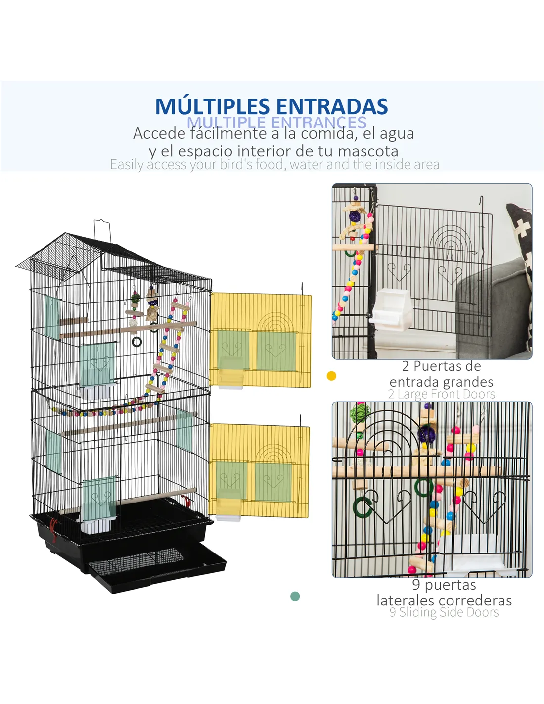 PawHut Bird Cage for Budgies, Finches, Canaries w/ Accessories, Toys, Tray