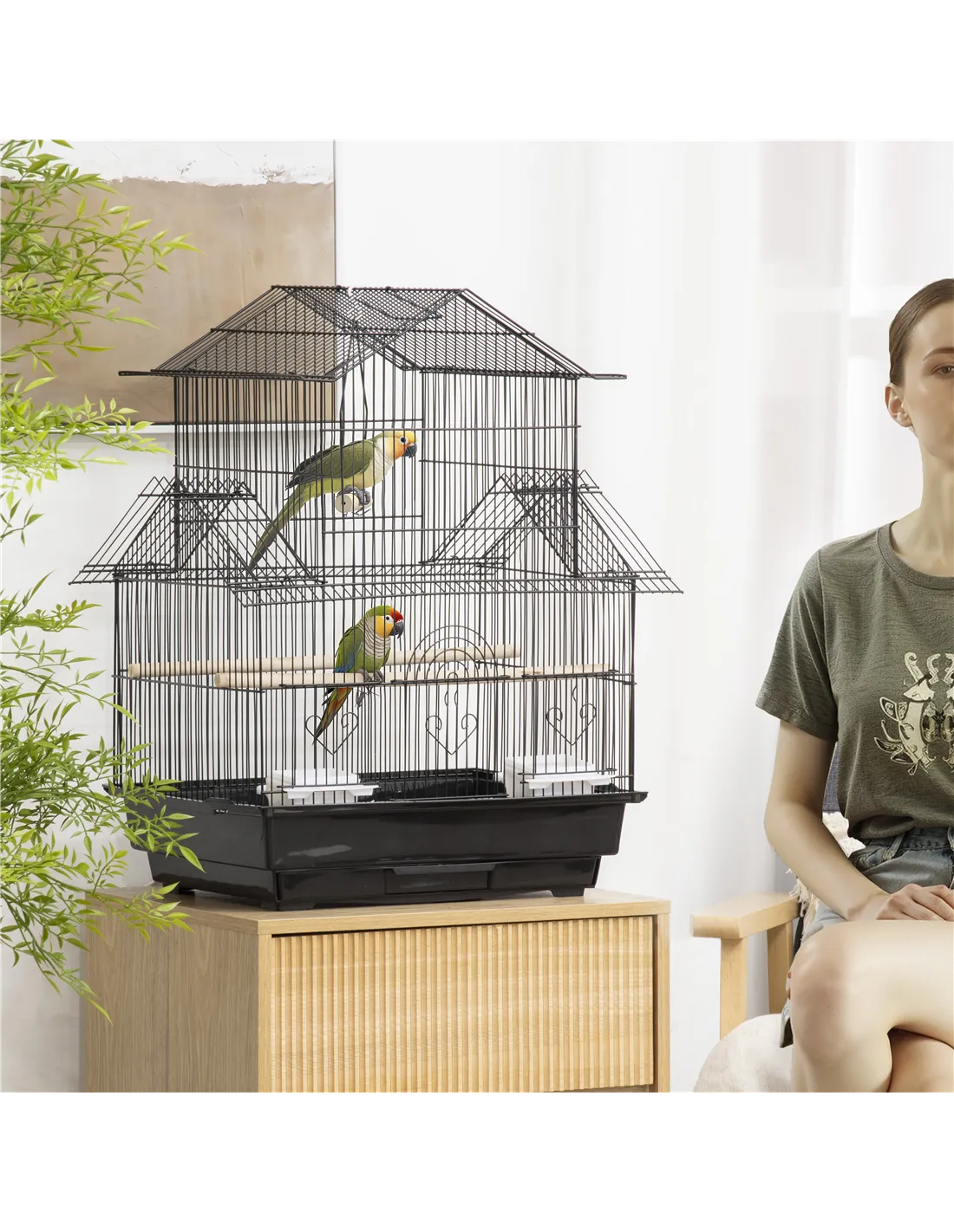 - Roof-shaped design increases the living space for your feathered friends
