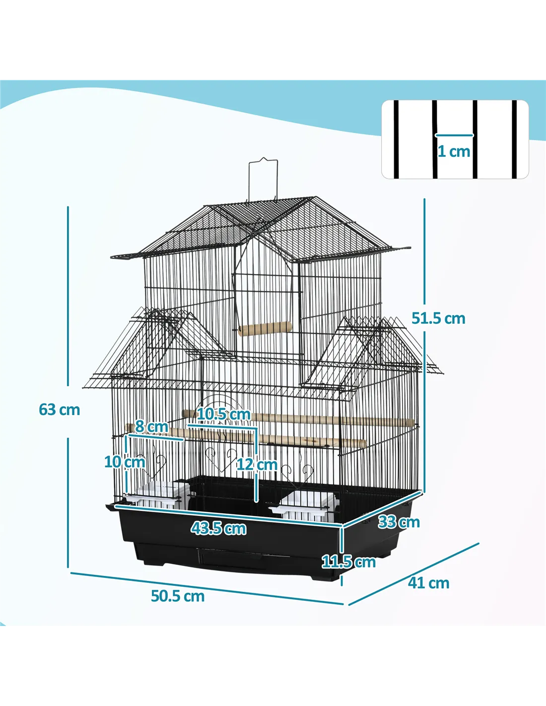 The PawHut metal bird cage is ideal for housing small birds such as finches, canaries, and budgies, providing a secure and comfortable environment indoors. Its compact dimensions (43.5 x 33 x 63 cm) make it a perfect fit for living rooms, kitchens, or conservatories without occupying excessive space. The roof-shaped design offers additional vertical room, encouraging natural movement and flight within the cage. The included swing and perches create an engaging habitat, promoting activity and mental stimulation. Thanks to the convenient handle, the cage can be easily relocated for cleaning or to provide your feathered friends with fresh air in a safe outdoor setting. The pull-out tray simplifies maintenance, making it effortless to keep the cage hygienic and fresh. This cage suits bird owners seeking a practical yet stylish home for their small pets, blending functionality with ease of care.