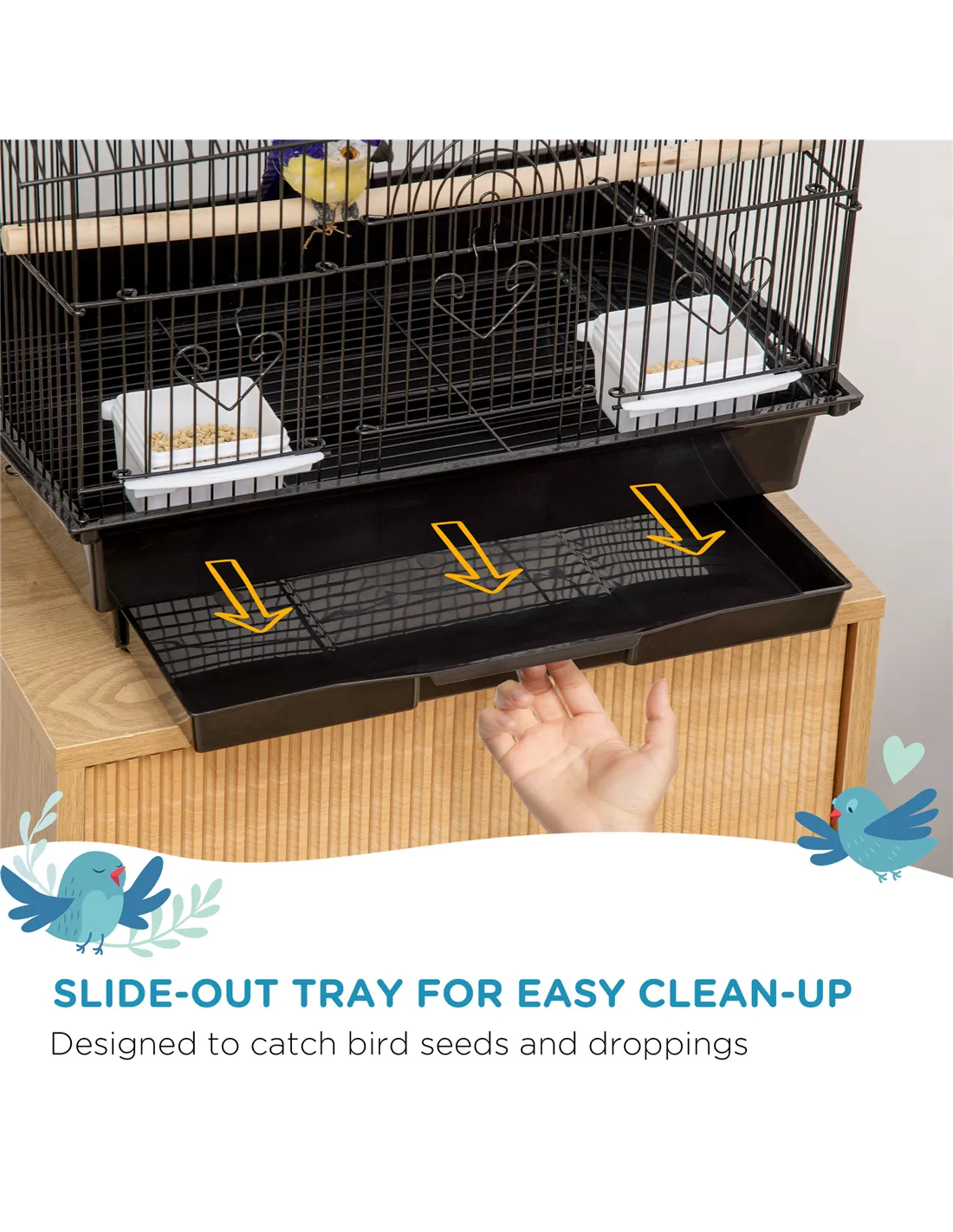 This cage is designed specifically for small birds such as finches, canaries, and budgies, providing ample space and comfort for these species. - How easy is it to clean the cage?