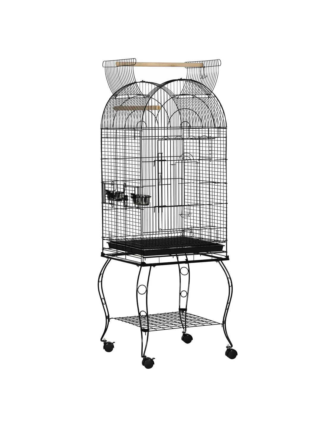 Upgrade your pet's home with this PawHut bird cage, providing comfort, space and security. They'll spread their wings as they relax on the perches. Containers for food and water, keeping them well-fed and hydrated. There are multiple doors and a removable tray at the bottom, so maintaining the bird cage is hassle-free. Underneath, there's a stand to keep supplies – and underneath that, are four wheels, so you can move the cage effortlessly. A home that has it all, allowing pets to thrive.