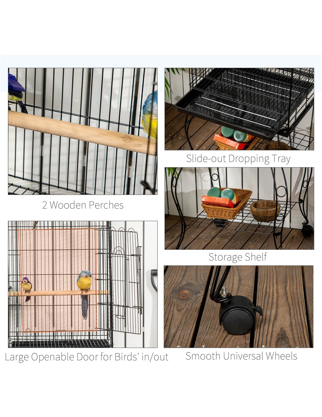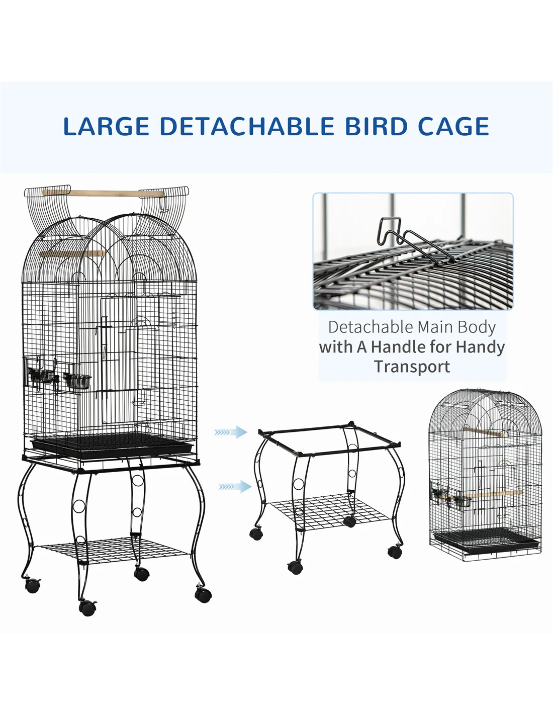 PawHut 1.53(m) Bird Cage, Pet Viary, Feeding Stand, with Wheels, Perch