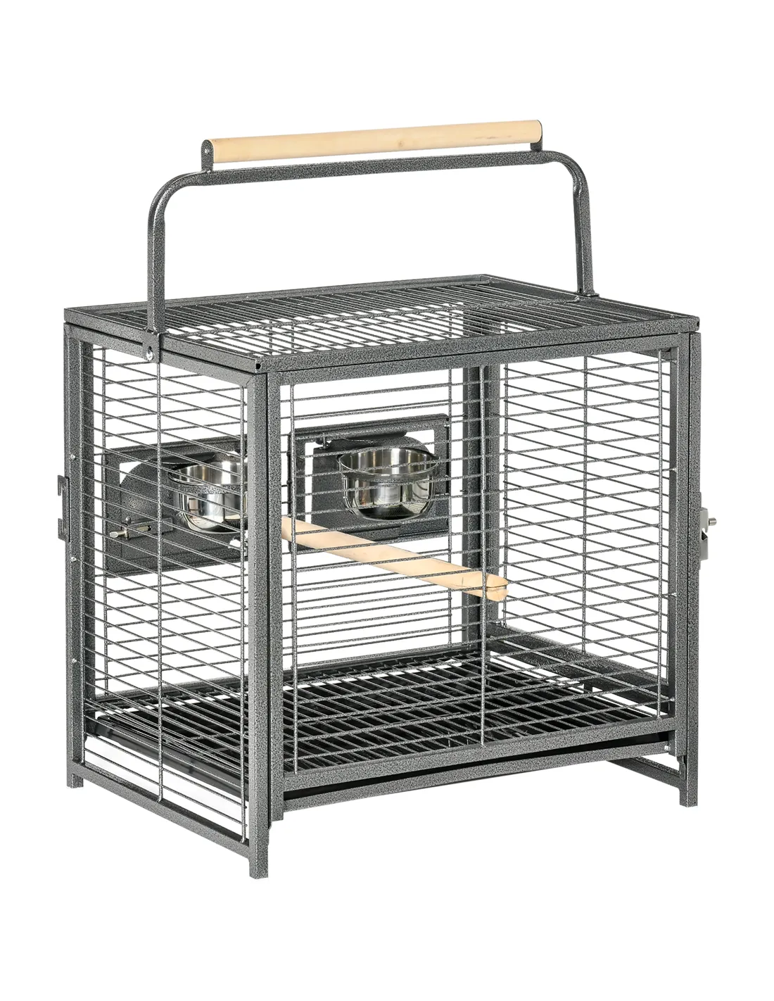 Travelling with pet birds has never been easier, thanks to this PawHut bird travel cage. Hassle-free for you and them, it's lightweight and compact and has a big handle on the top, so you'll carry with ease. Pets will rest on the sturdy perches, as they enjoy their food and water from the provided bowls. Removable tray at the bottom for quick cleaning, keeping their space tidy, whilst the steel wire keeps pets safely inside, making sure they don't escape; a secure home - perfect for on-the-go.