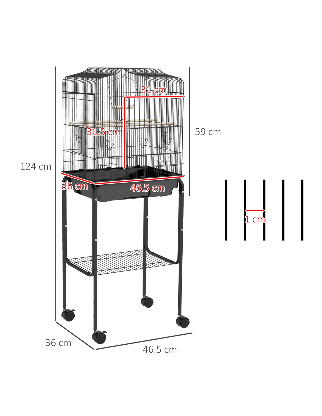 - Bird Cage Dimension: 59H x 46.5L x 36Wcm