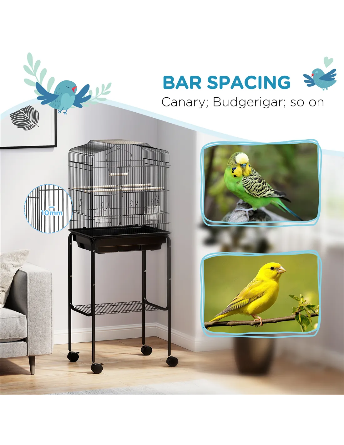 This cage is designed for small birds such as budgies, finches, canaries, and parakeets, providing ample space and safety features tailored to their needs. - How easy is it to clean the cage?