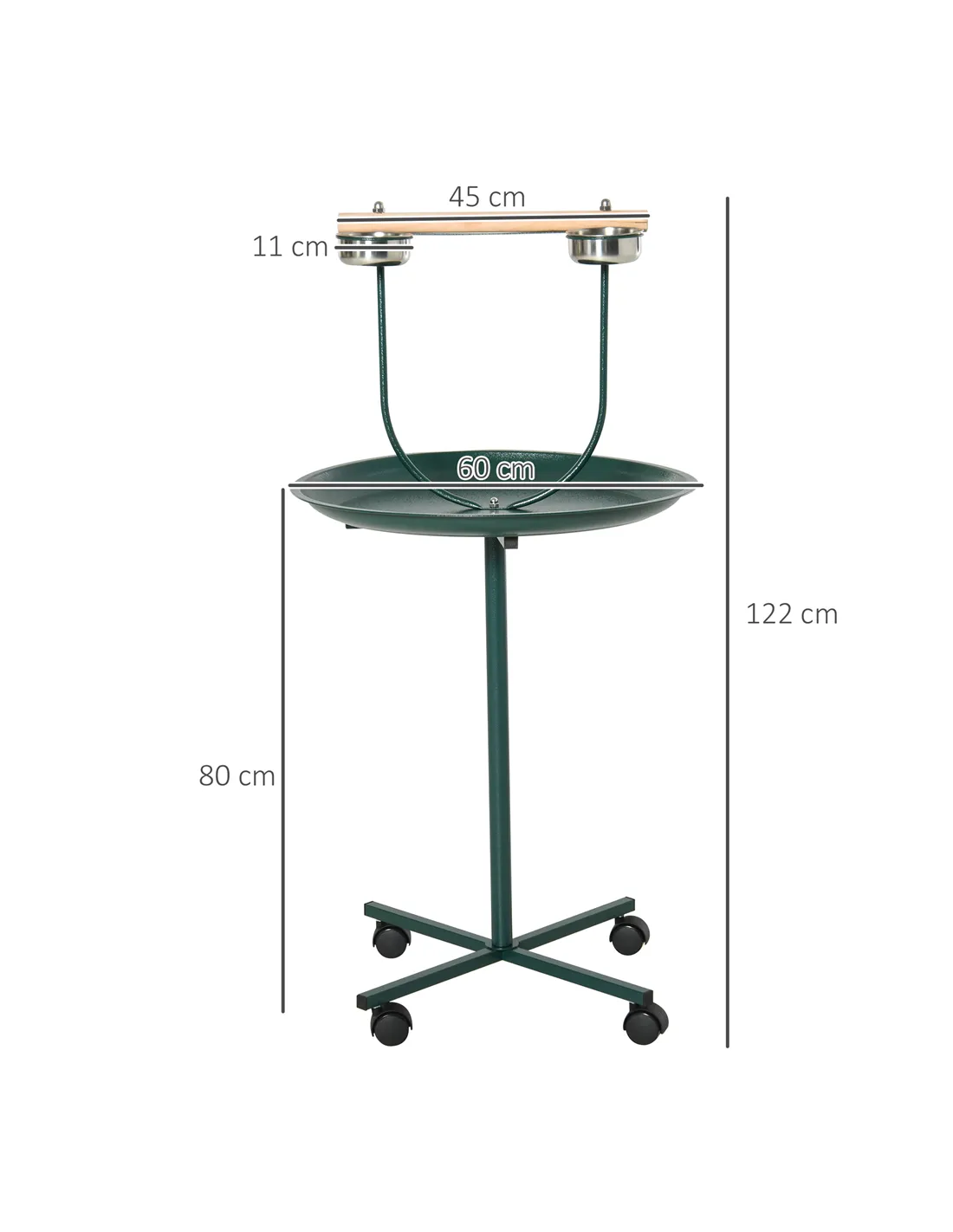PawHut Bird Perch Stand with Four Wheels, Feeding Bowls, for Small, Medium Birds, Green