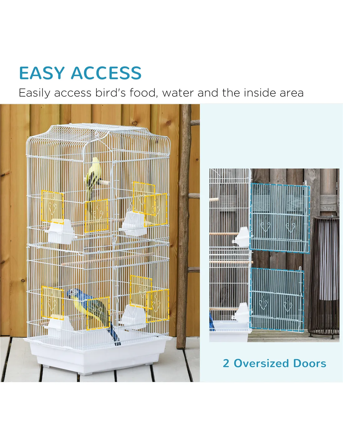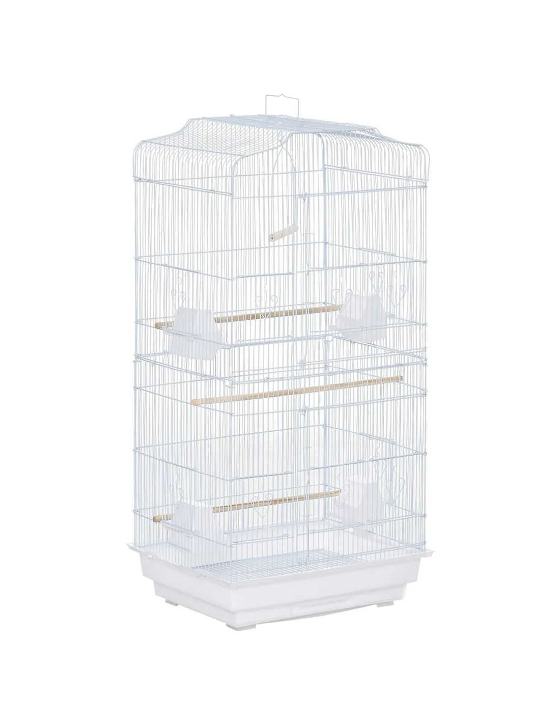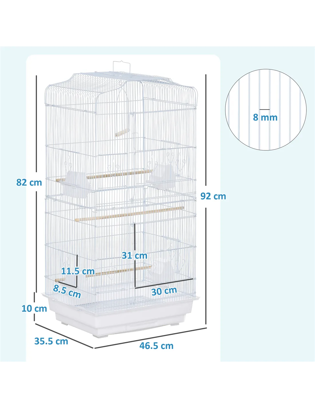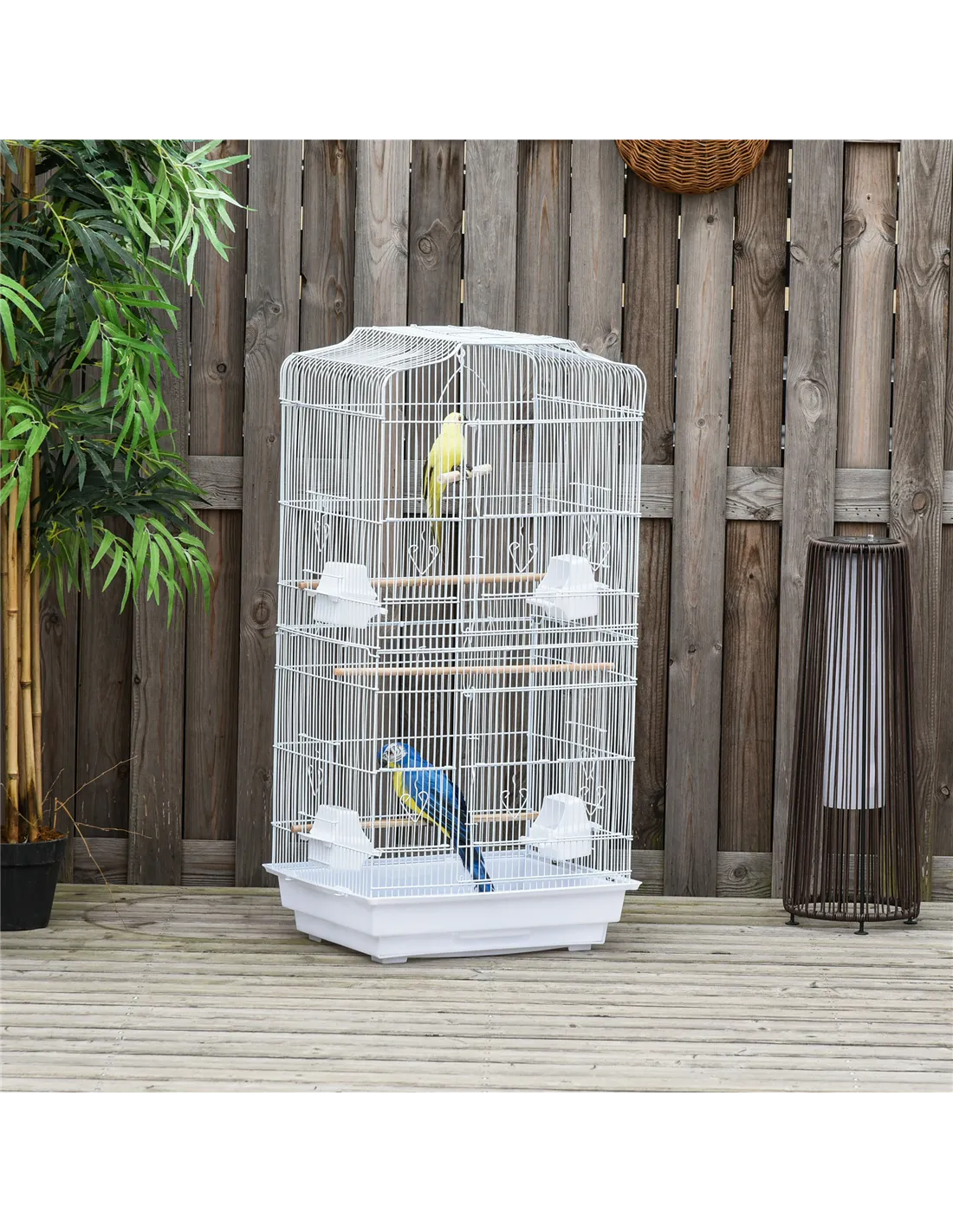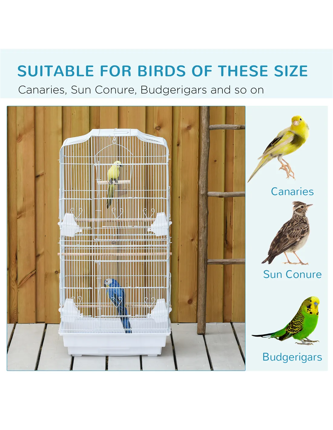 PawHut Large Metal Bird Cage with Perches, Food Bowls, Swing, for Budgies, Parakeets, White