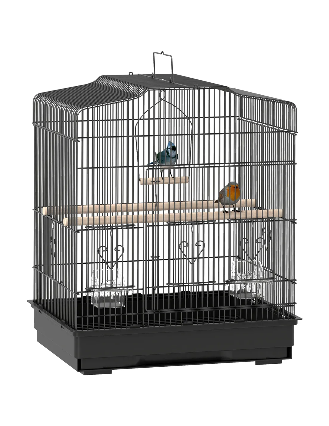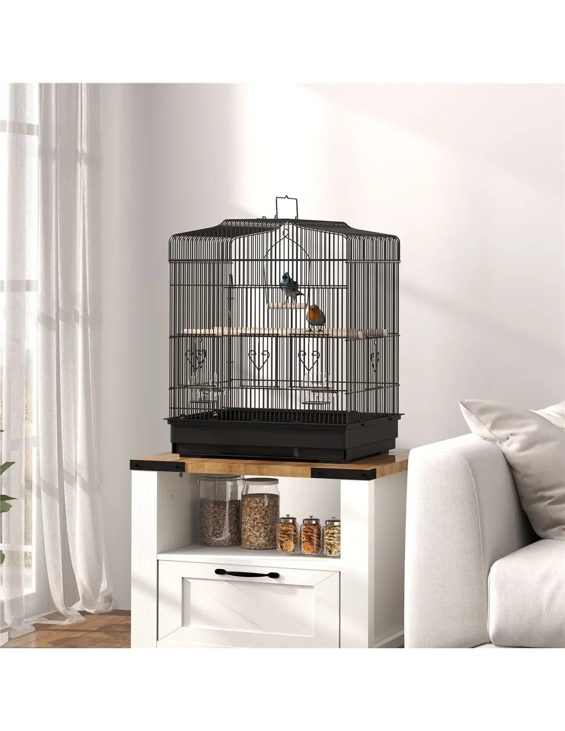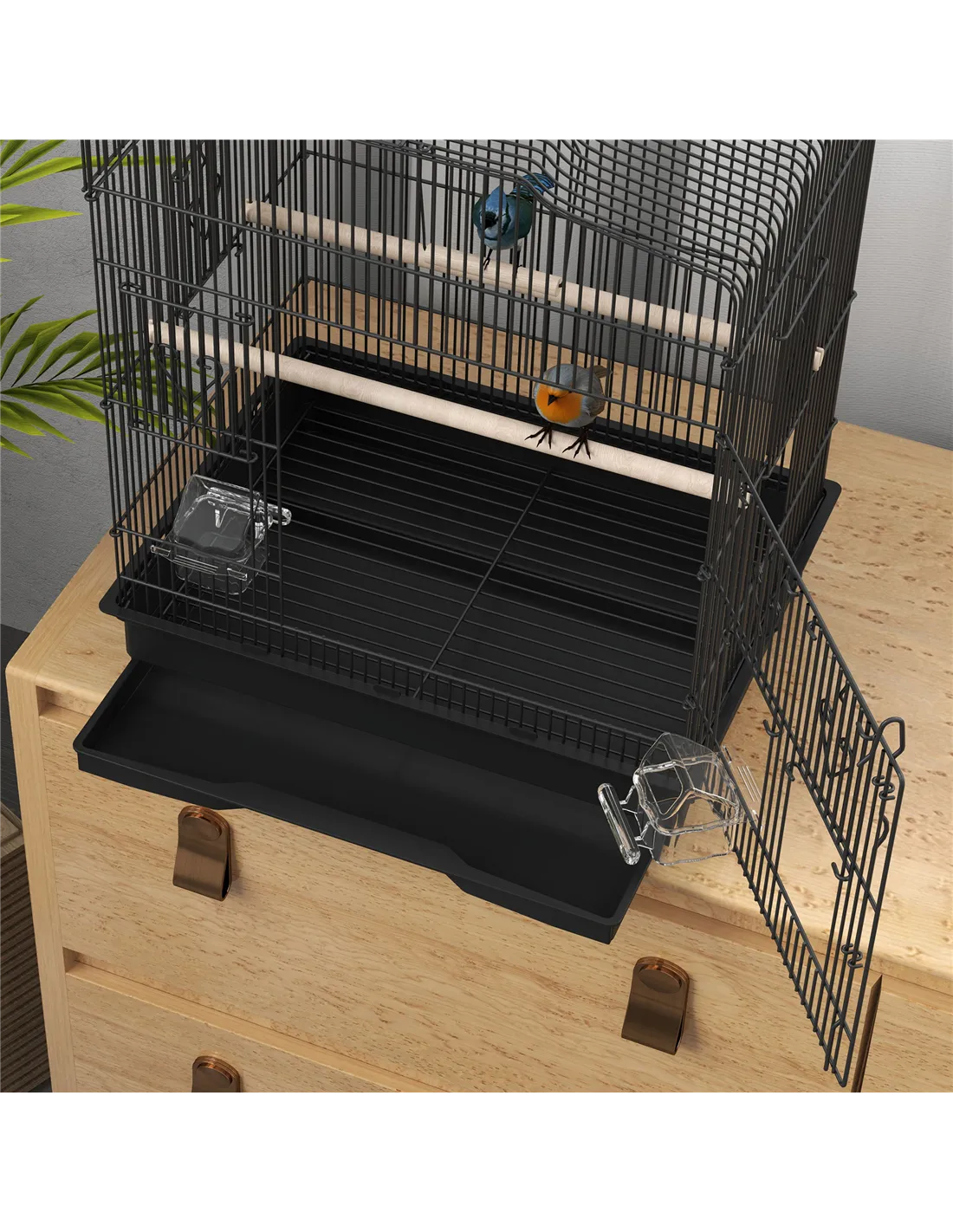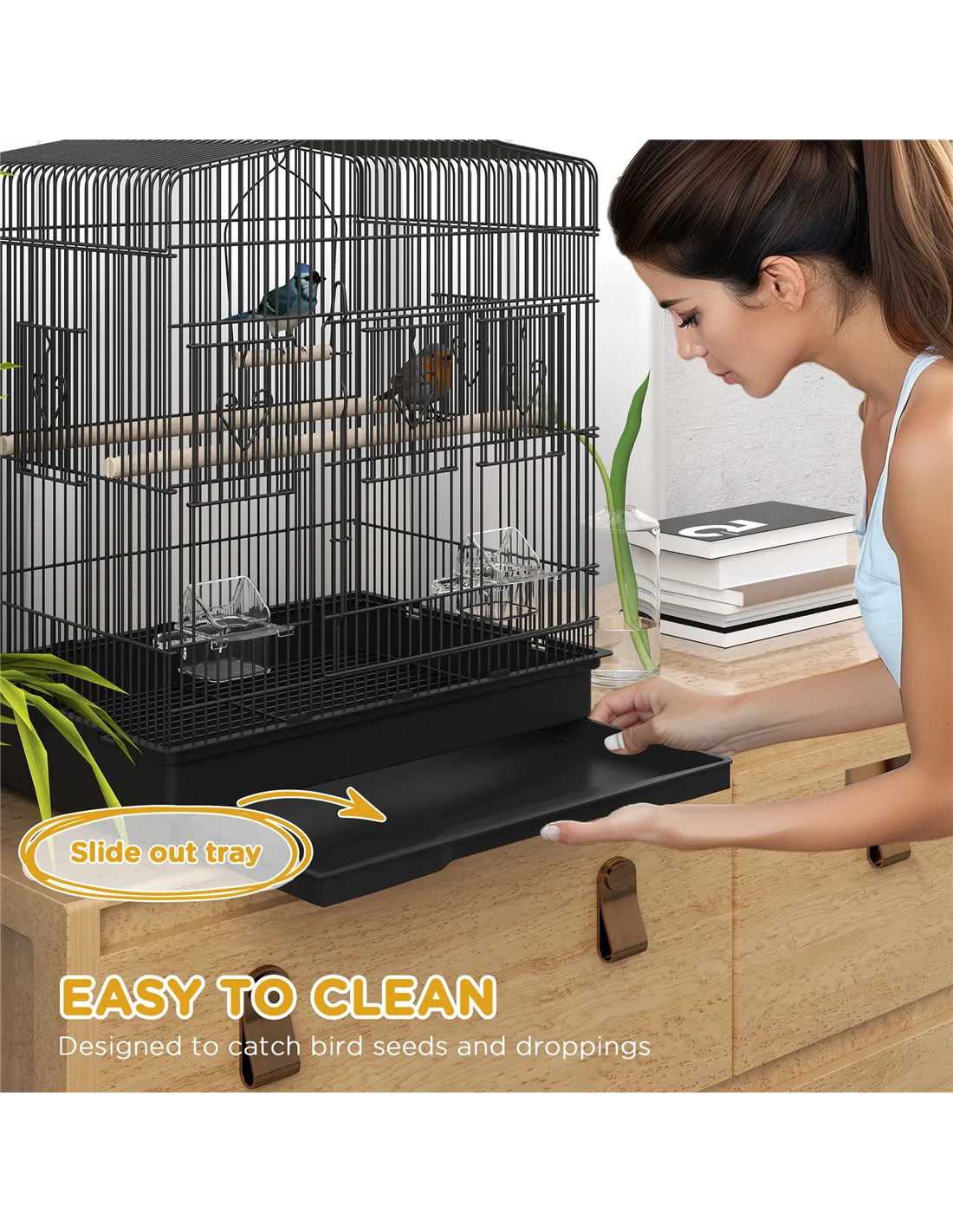 PawHut Large Metal Bird Cage with Perches, Food Bowls, Swing, for Budgies, Parakeets, Black
