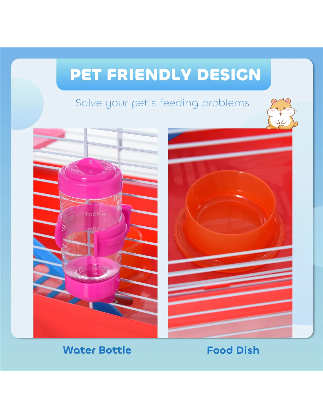 - The front door allows you access to your hamster easily