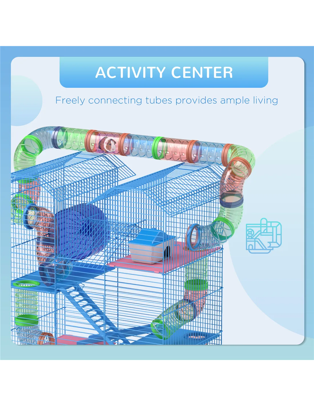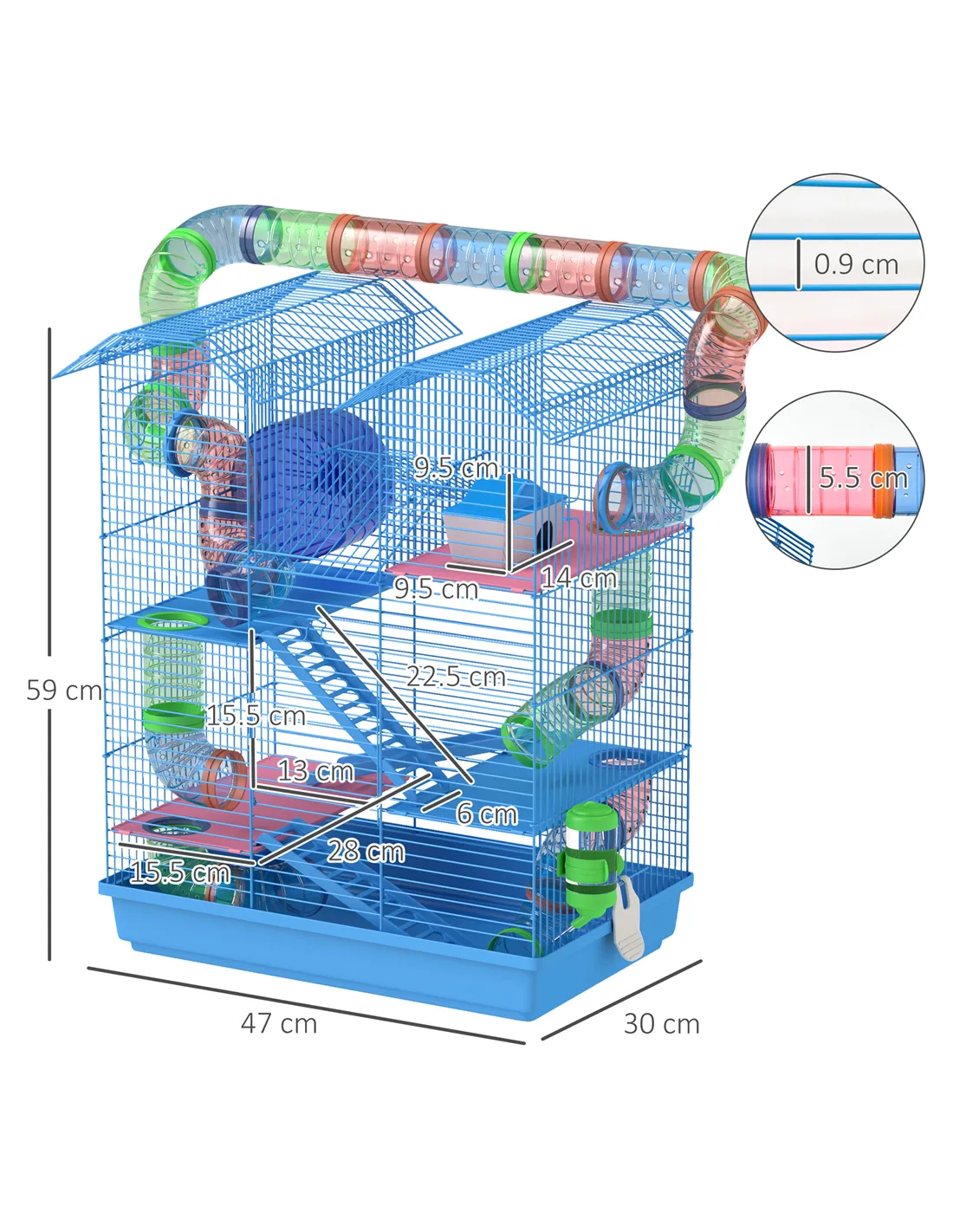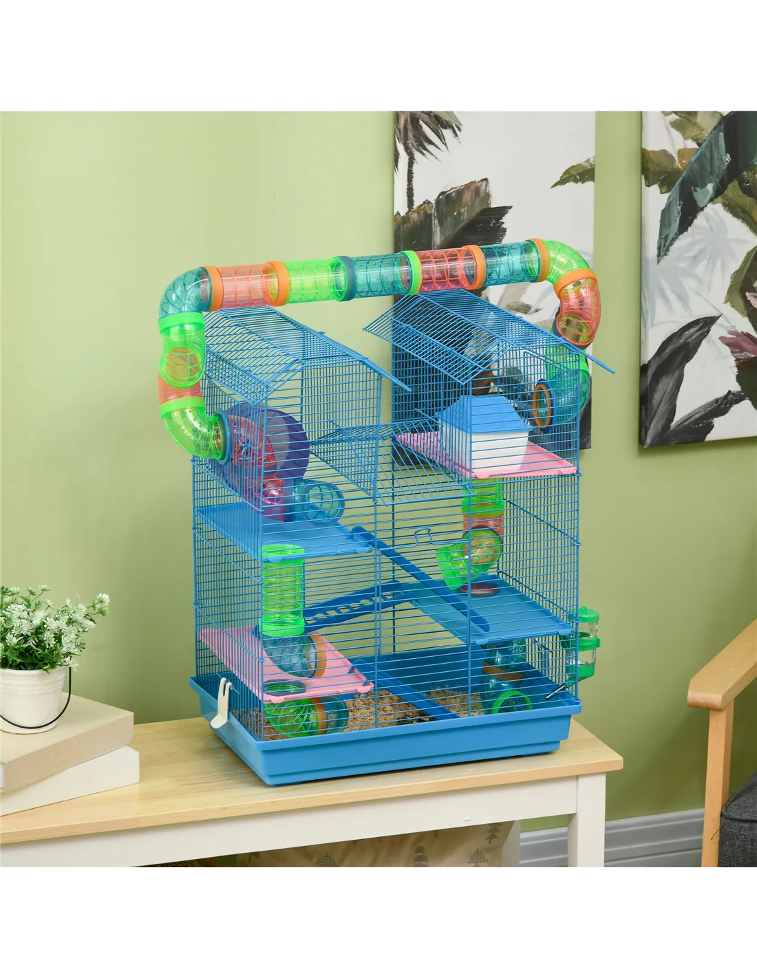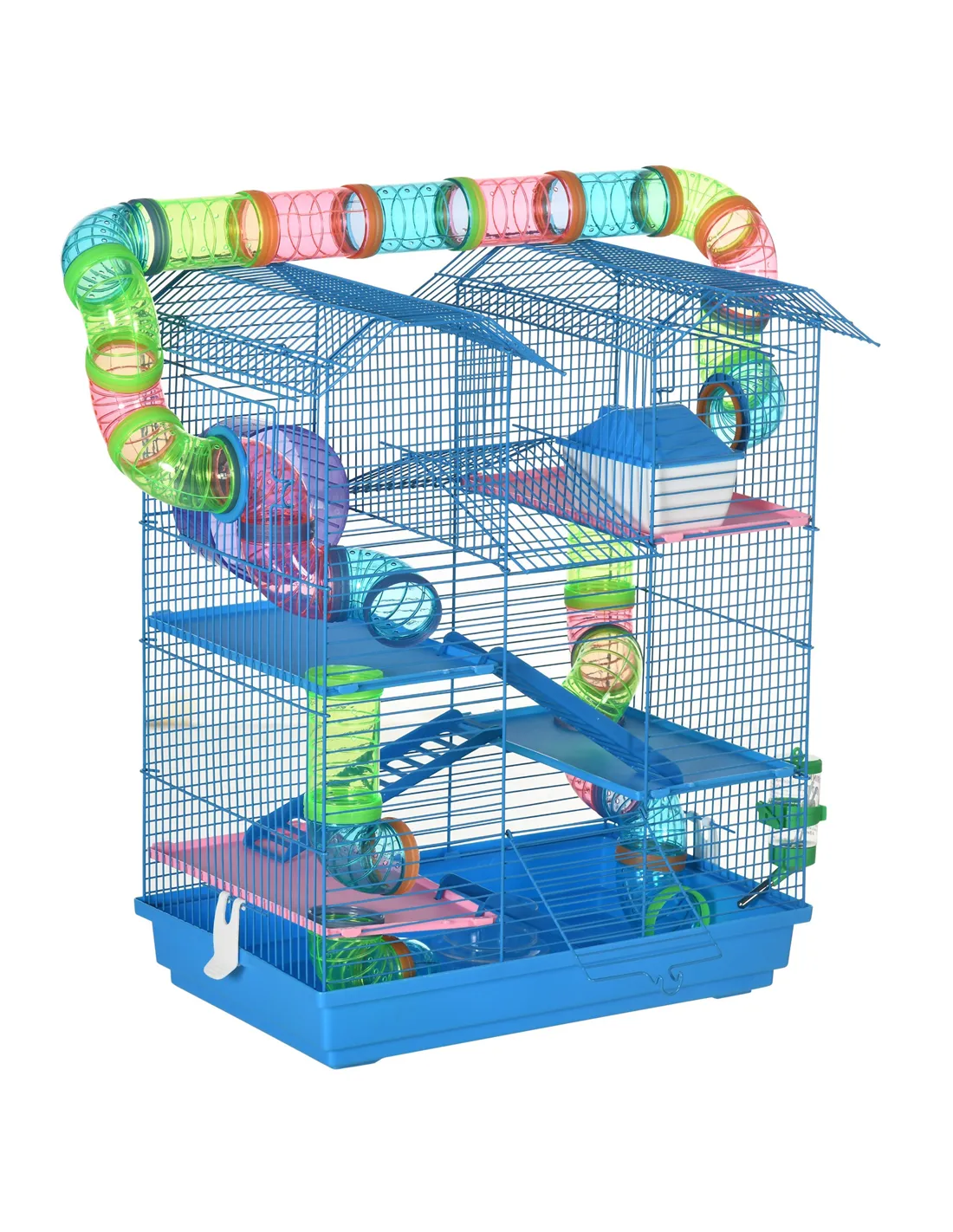 PawHut 5 Tier Hamster Cage Carrier Habitat with Exercise Wheels Tunnel Tube Water Bottle Dishes House Ladder for Dwarf Mice, Blue