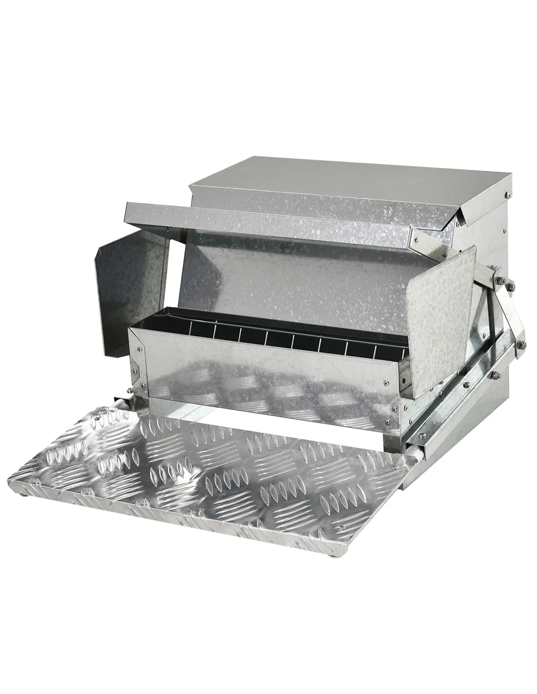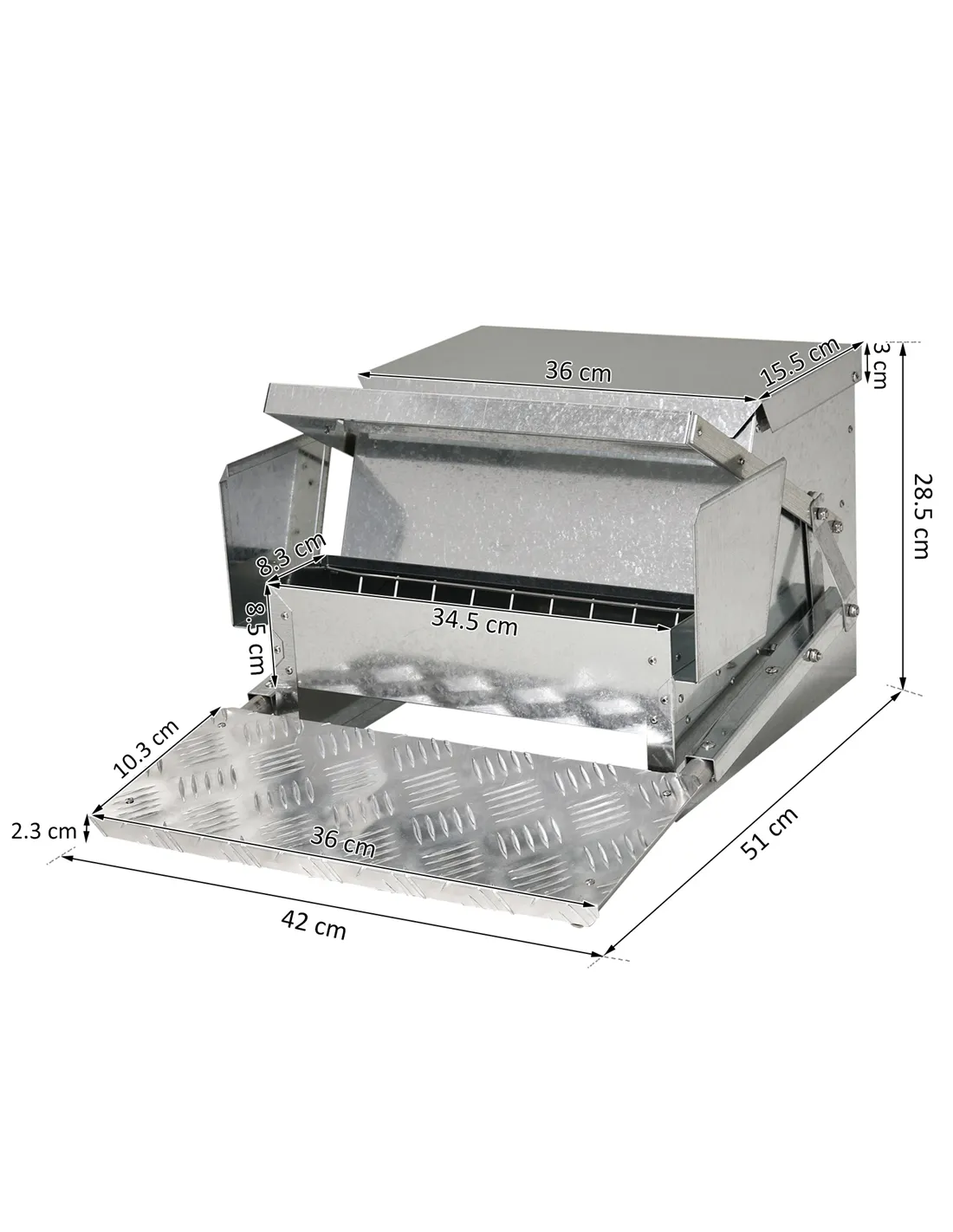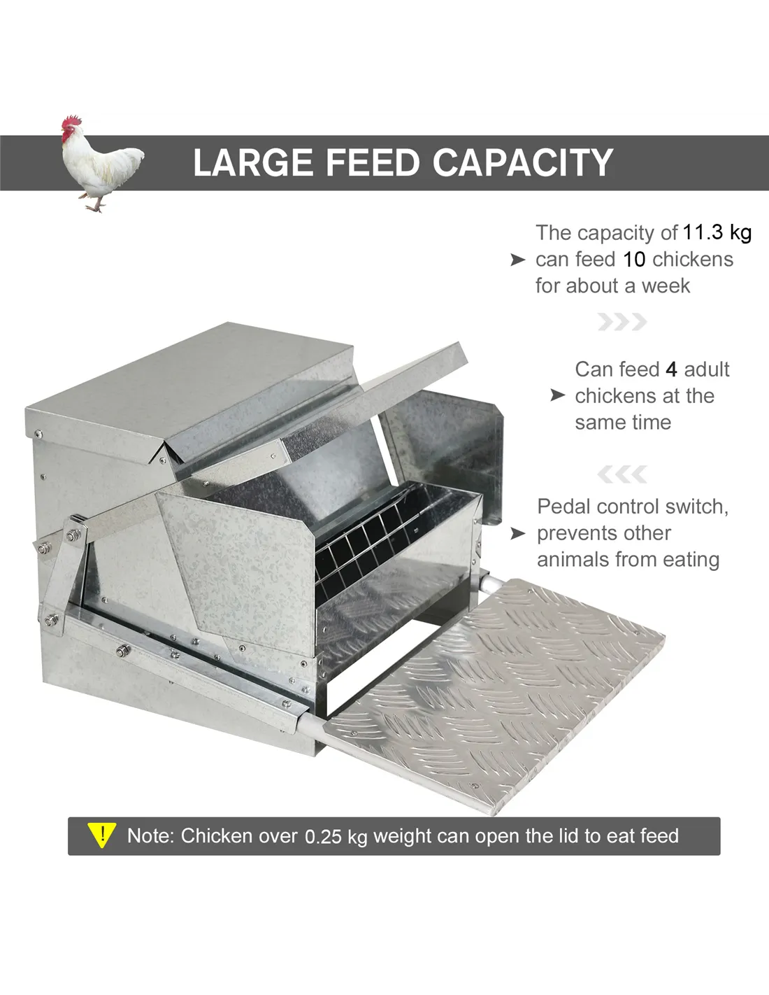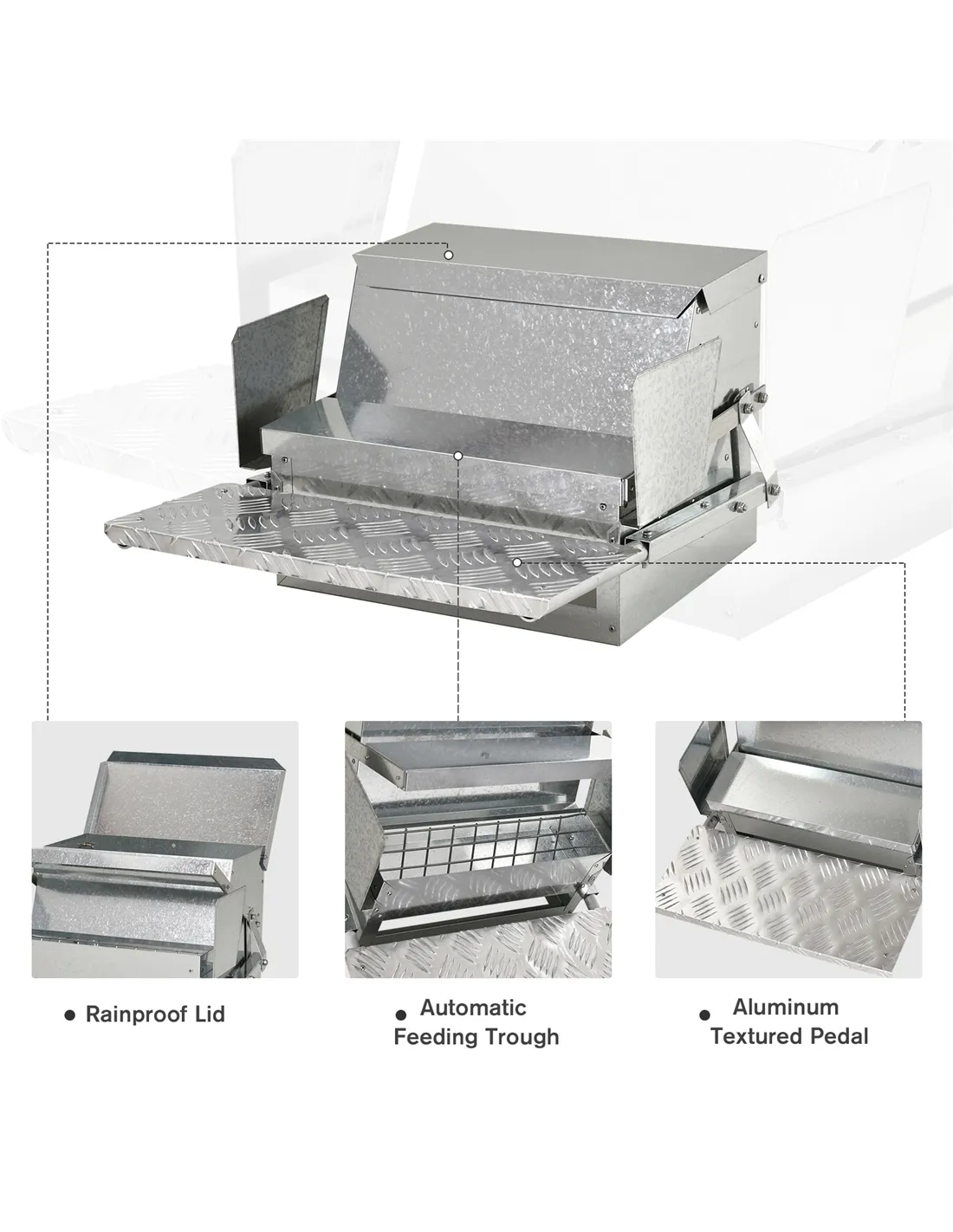 PawHut 11.5KG Automatic Chicken Poultry Feeder Rat Proof Treadle Self Opening with Galvanized Steel and Aluminium