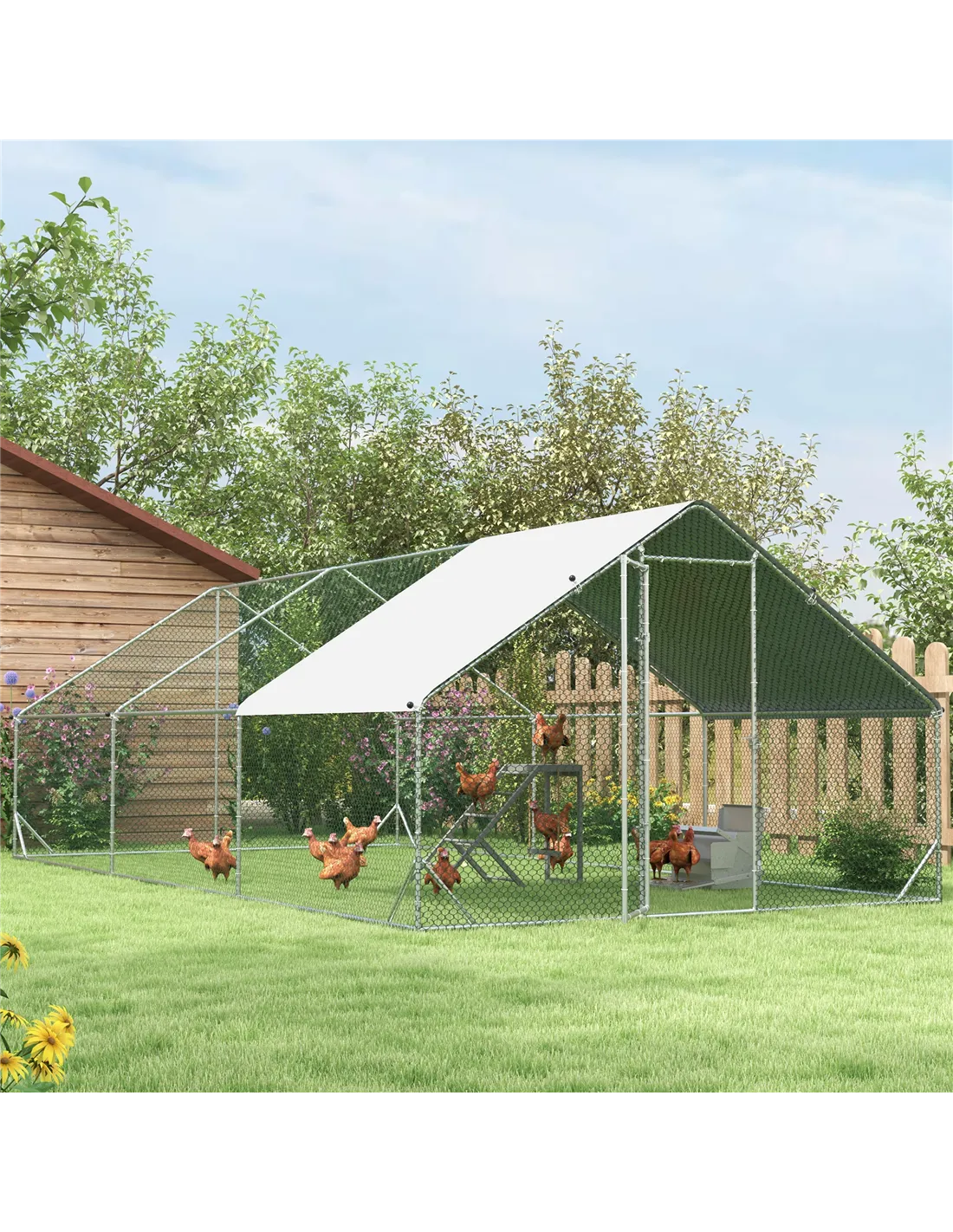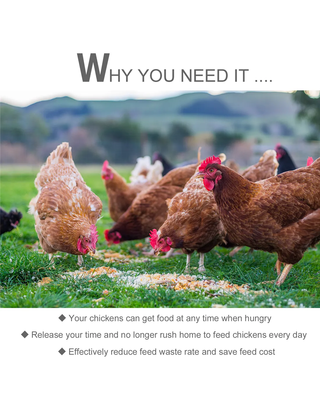 Are you unable to enjoy a short trip because of feeding chickens at home? Do you often forget to feed chickens and make them hungry? Let's take a look at our PawHut Rainproof Outdoor Chicken Feeder. The 11.5kg capacity feed can let 10 chickens eat for about a week, so that you can save money and time, and let the chickens enjoy buffet anytime. Our poultry feeder made is made of galvanized sheet and aluminum alloy which makes this automatic chicken feeder really strong and durable, weather proof to ensure feed drying. The comprehensive design of this outdoor chicken feeder for chickens, make your chickens grow healthily and lay eggs happily.