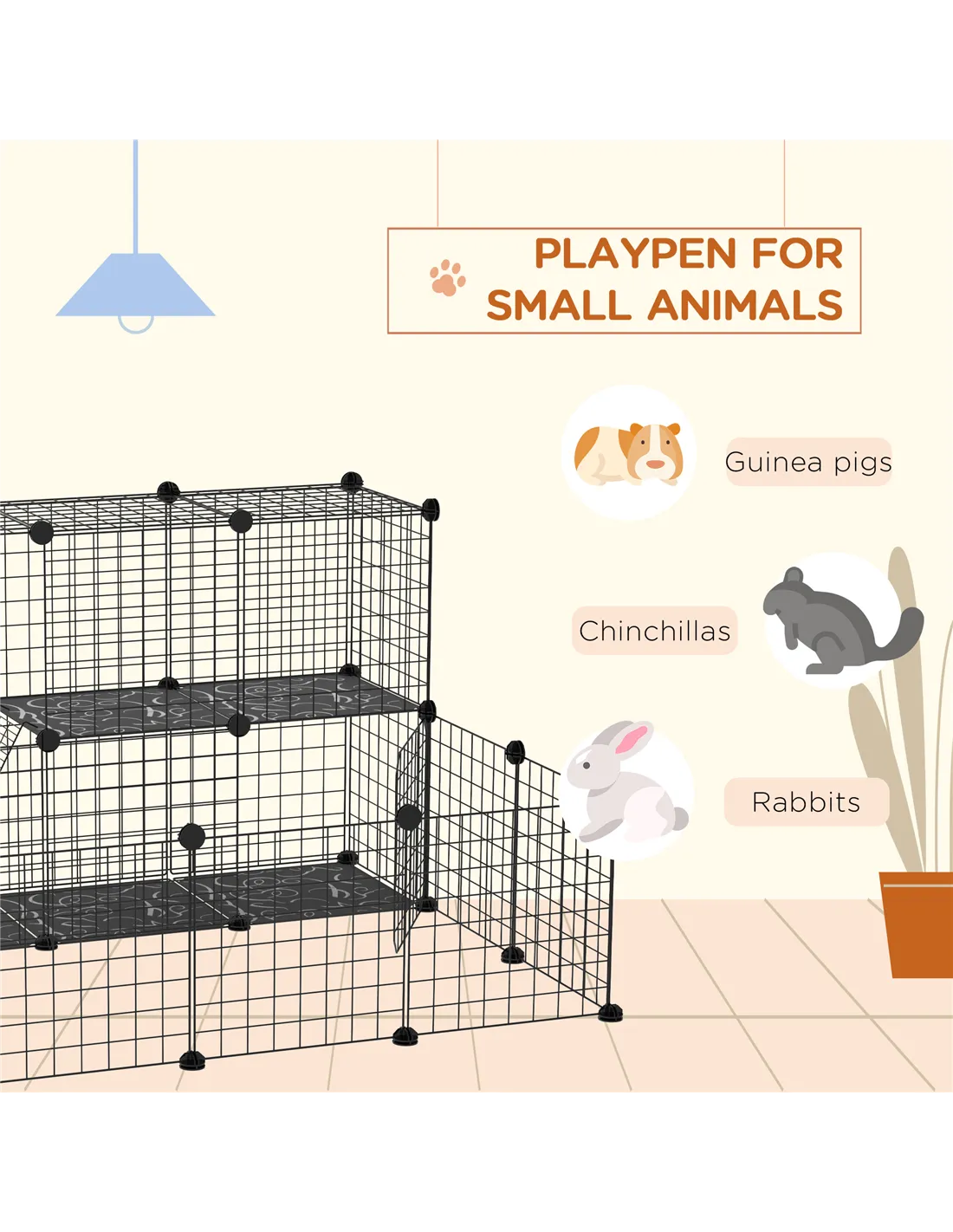 PawHut Pet Playpen w/ Door Customisable Fence for Guinea Pigs Chinchillas Hedgehogs - Black