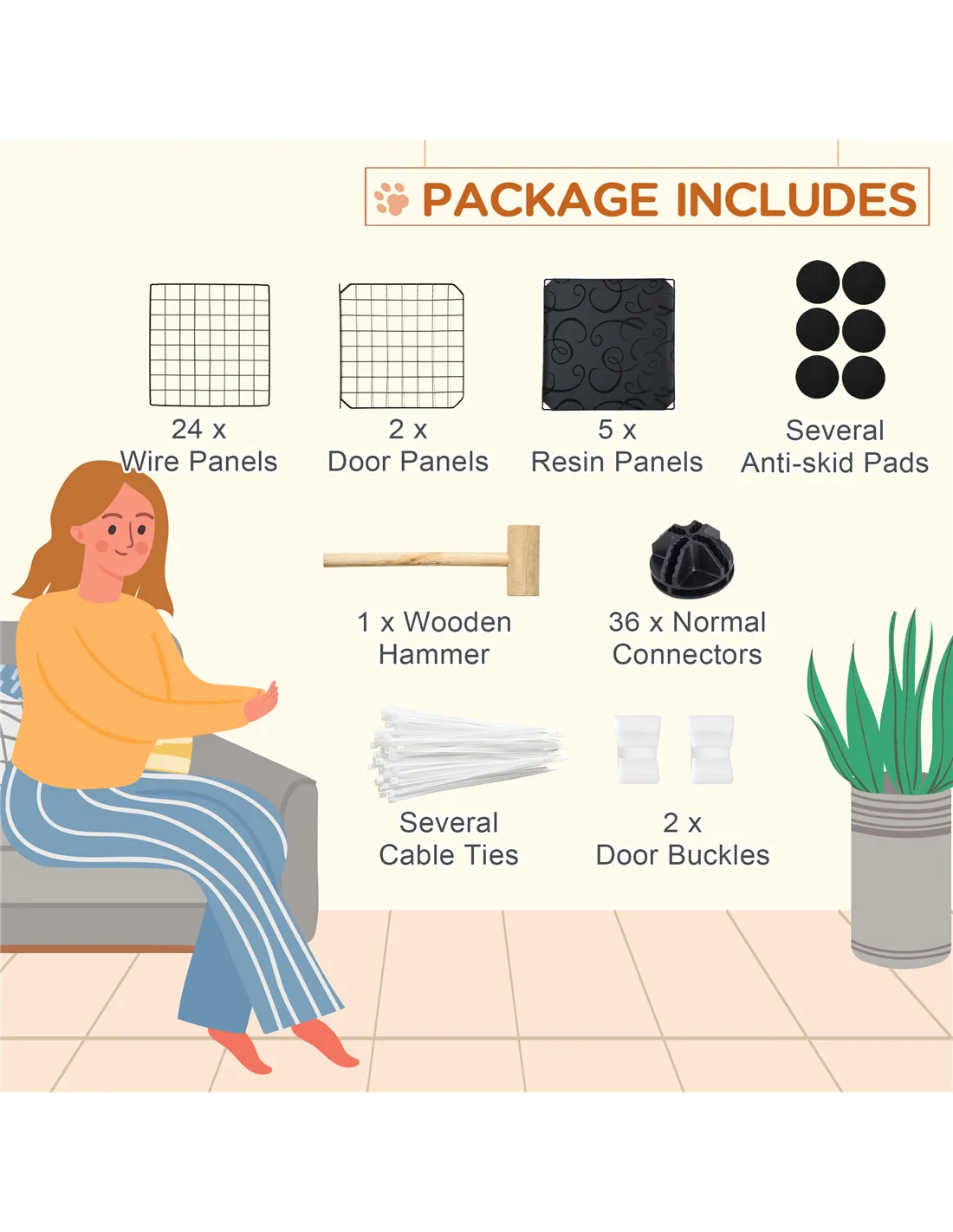 - Comes with 24 wire panels, two door panels, five resin panels and a ladder