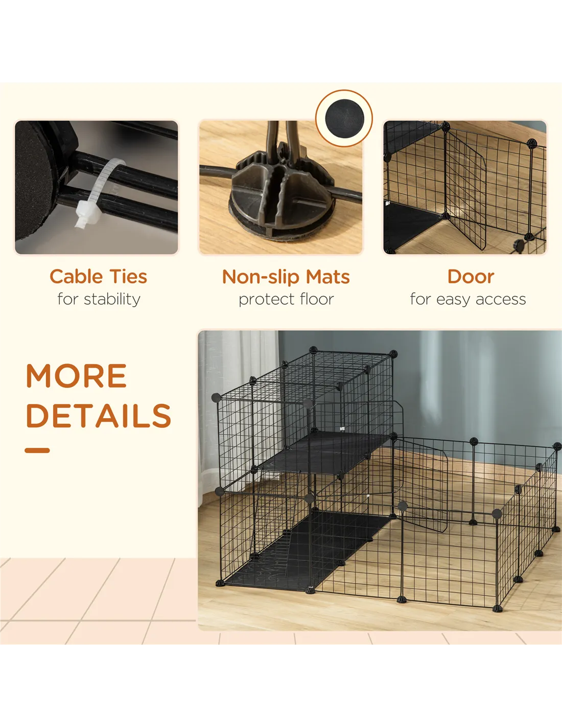 Absolutely. The playpen is designed with 24 wire panels and multi-angle connectors, allowing you to customise the shape and size to fit your available space and your pet’s needs. - What pets is this playpen suitable for?