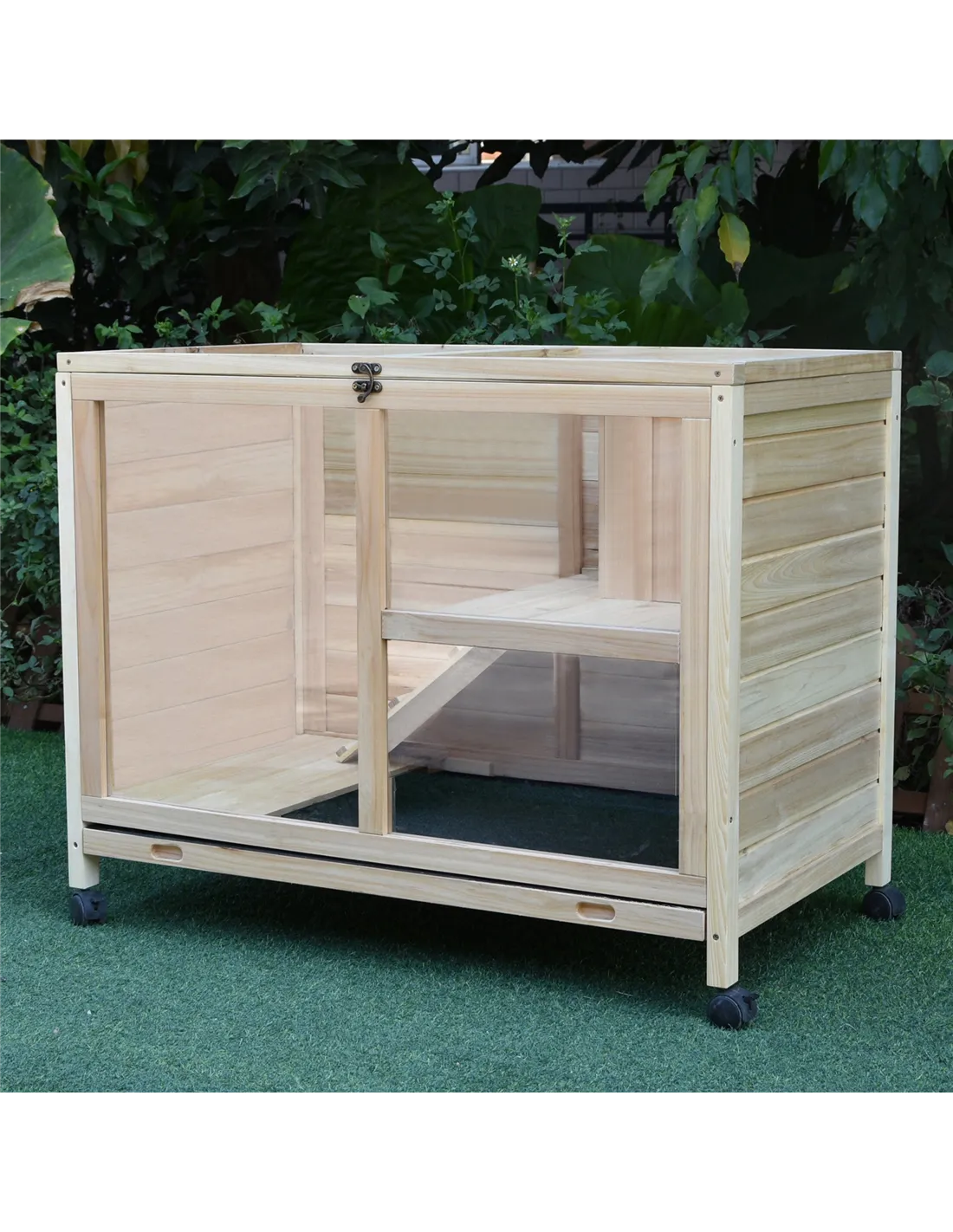The PawHut indoor hutch is an ideal habitat for small pets such as guinea pigs, rabbits, and other large rodents, providing a secure and comfortable environment within your home. Its two-level design offers ample space for your pets to explore and rest, while the multi-access points simplify feeding and cleaning routines. Thanks to its compact footprint and four wheels, this wooden enclosure can be easily relocated to suit your living space, whether placed in a cosy corner of your lounge or a dedicated pet room. The natural fir wood finish complements a variety of interior styles, making it a practical and attractive addition to your household.