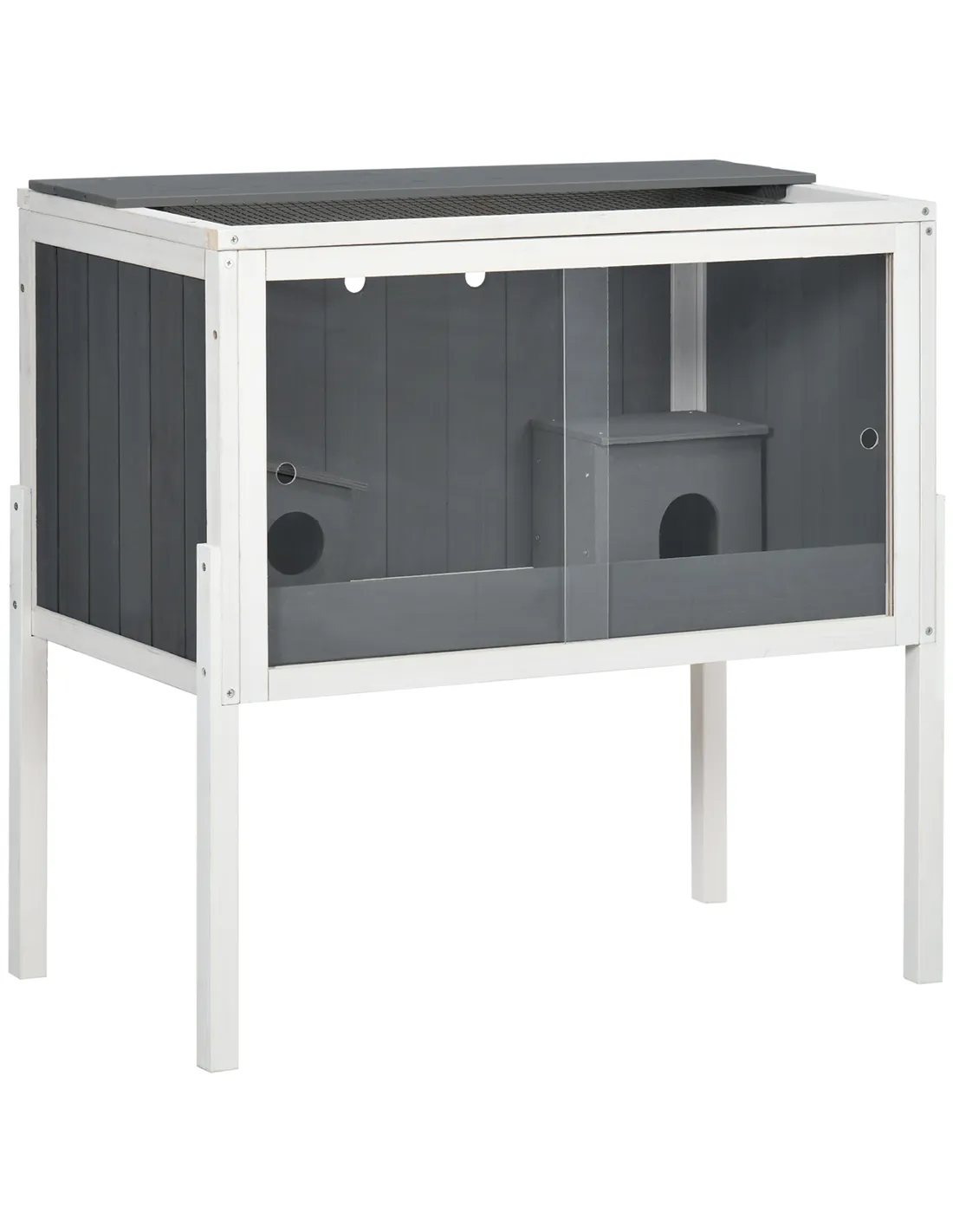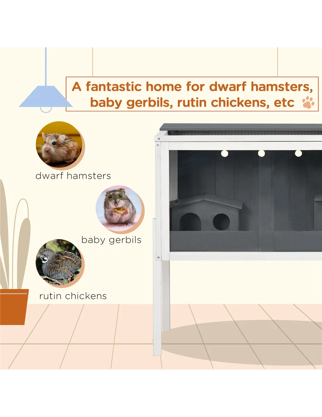 PawHut Wooden Hamster Cage for Dwarf Hamsters, Gerbils, Rutin Chicken, with Shelf, Two Huts - Grey