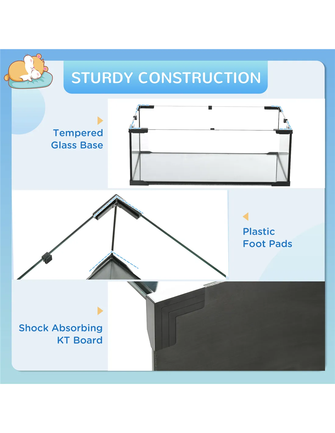 Based on reviews from our customers, the PawHut cage is praised for its sturdy construction and spacious design, which keeps small pets comfortable and entertained. Many highlight the safety features such as the tempered glass bottom and non-slip ramps, which provide peace of mind. Users appreciate the ease of assembly and the thoughtful inclusion of essential accessories like the water bottle and food dish. PawHut - a recognised brand in pet supplies across the UK - consistently delivers quality products that meet the expectations of small pet enthusiasts.