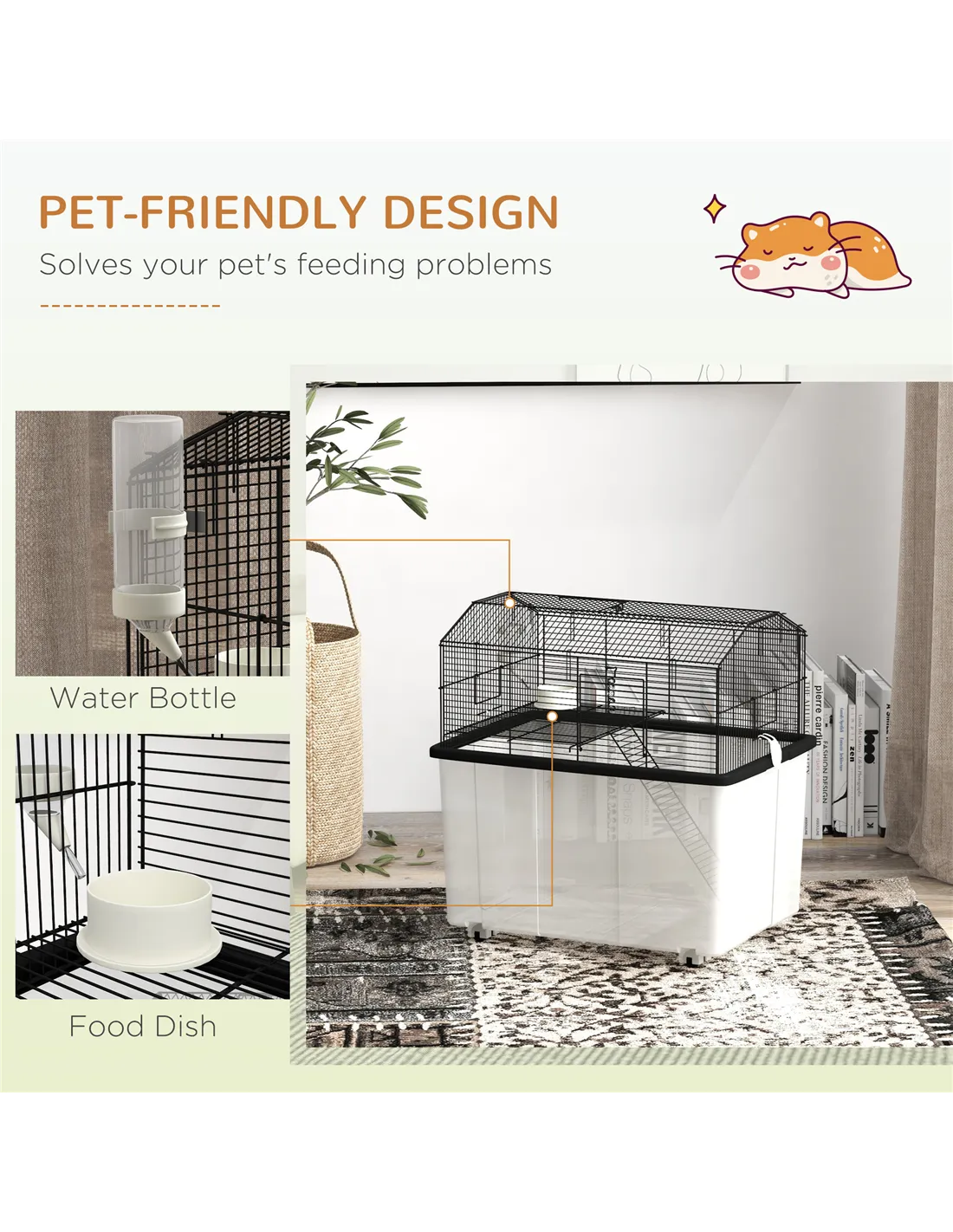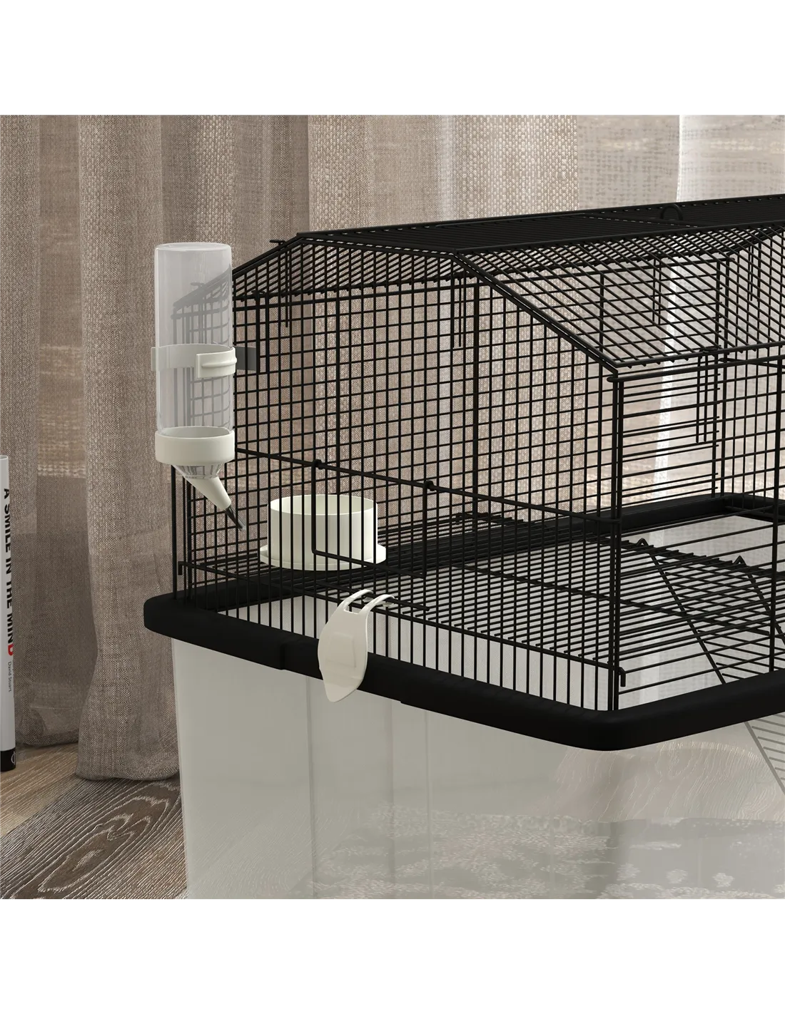 - Food dish and water bottle for simple feeding