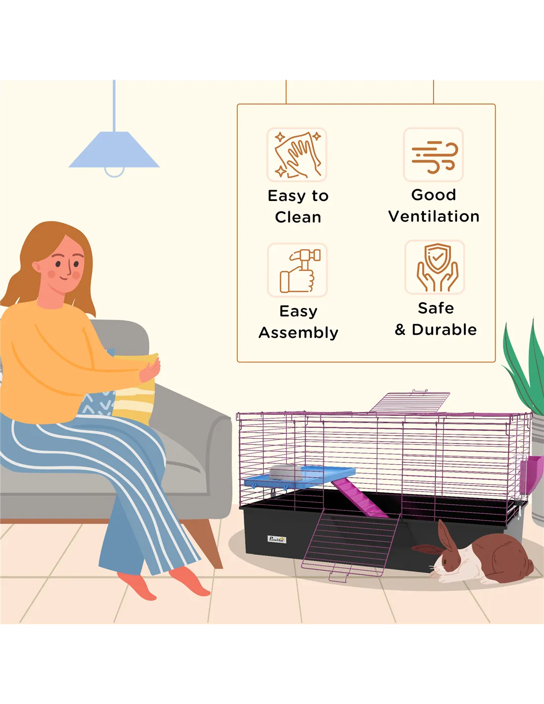 Based on customer reviews, the PawHut cage is praised for its sturdy construction and thoughtful design. Owners appreciate the ample ventilation provided by the metal wire frame, which keeps pets comfortable and healthy. Many highlight the convenience of the large front door and the included accessories such as the hay feeder and water bottle, which meet all basic needs. Users also note the ease of assembly and the cage’s suitability for multiple small animals. PawHut - a recognised brand in pet supplies across the UK since 2012 - consistently delivers quality products that pet owners trust.